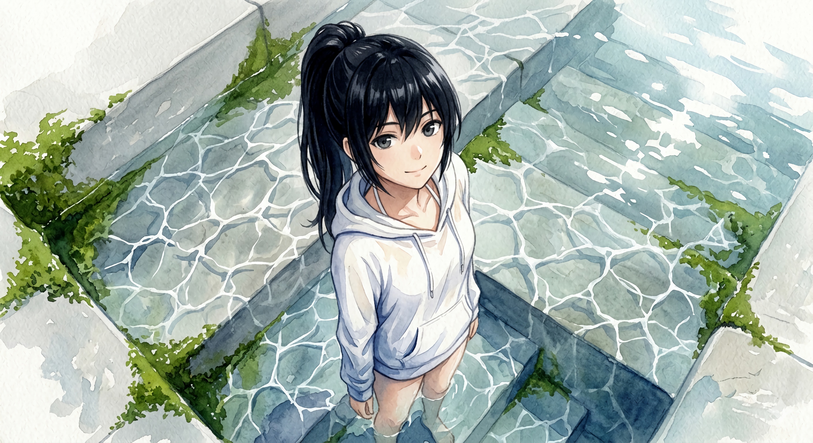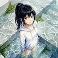 水面上に留まる光の積層と、水面下へ沈みゆく色彩の乖離。