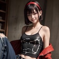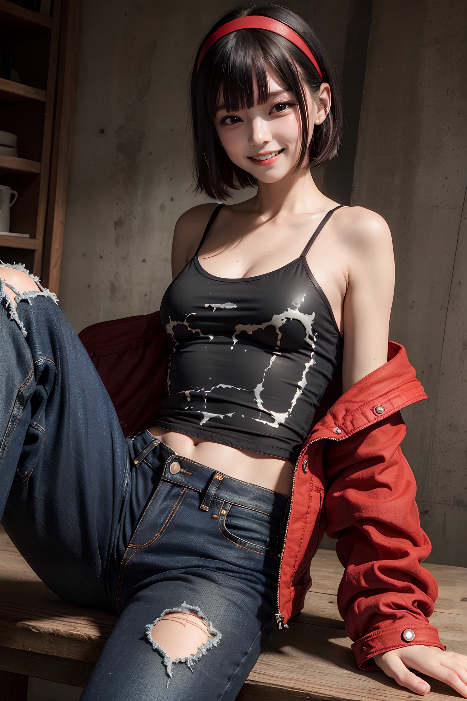 jacket partially removed, heart in eye, burnt clothes, holding fishing rod, kanji, doujin cover, pentagram, tape gag, adjusting headwear, red socks, friends, cloud print, coke-bottle glasses, oral invitation, competition school swimsuit, barbell piercing, gradient legwear, prisoner, blood on breasts, wind chime, carrying over shoulder, tape measure, flaming weapon