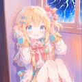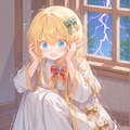 嵐の日に窓の外で轟く雷を怖がる異世界から来たエルフの女の子を作ってみました