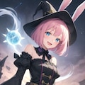 フリルがたっぷりあしらわれた衣装を着た魔女のイラスト。キャラクターは華やかなフリルが施されたドレスを身にまとい、ゴシック調の魔女帽をかぶっている。ドレスは黒や紫を基調にしつつ、ピンクや白のリボンやレースがアクセントとして使われている。彼女は可愛らしい笑みを浮かべているが、その目には魔女らしい神秘的な光が宿っている。背景には夜空や魔法のシンボルが浮かび、全体的にゴシックでファンタジックな雰囲気が漂うシーン。
