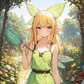 1girl, Cute girl, Fairy Costume, small breasts, slender, flat chest, smile, hold up big placards saying 'Thank you', garden, soft sunlight, masterpiece, best quality, ultra quality, high quality, hyper detailed,