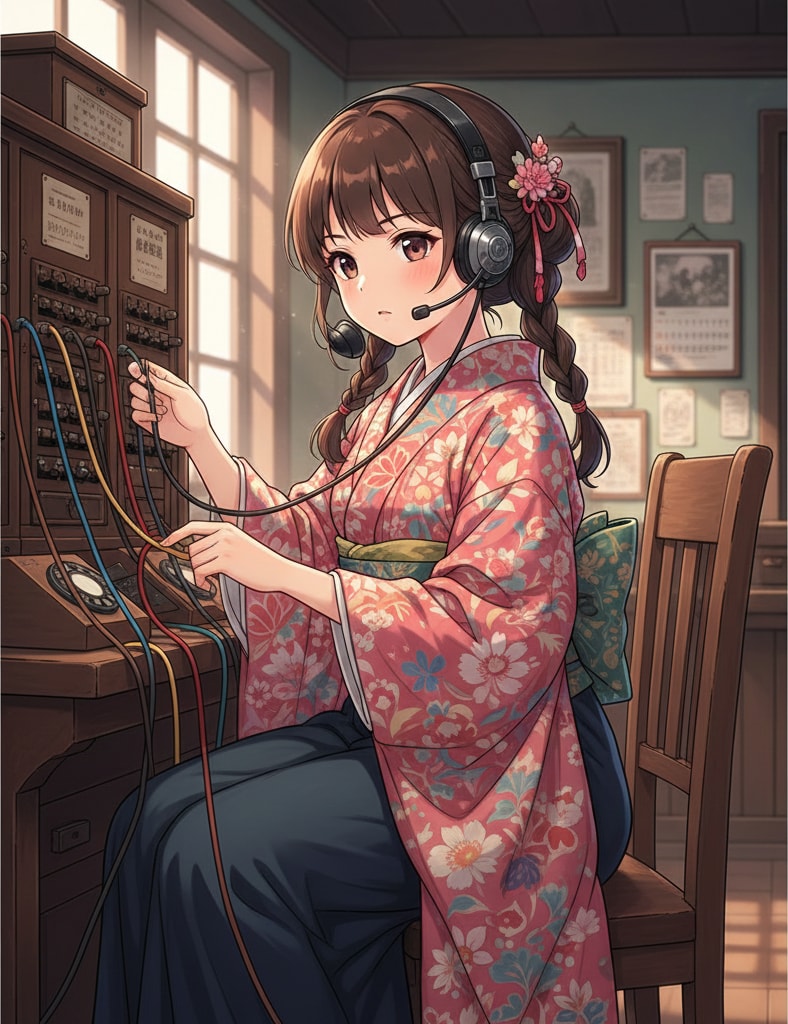 交換手の女の子を萌え系の絵として投稿しました。