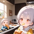 二枚目の子はバターを先に食べていますwその向こう側にキッチン?シンクかな?ちびっこが入ってますw