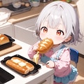 三枚目の子はパンをかじってますがパンのお尻からバターが漏れてますw