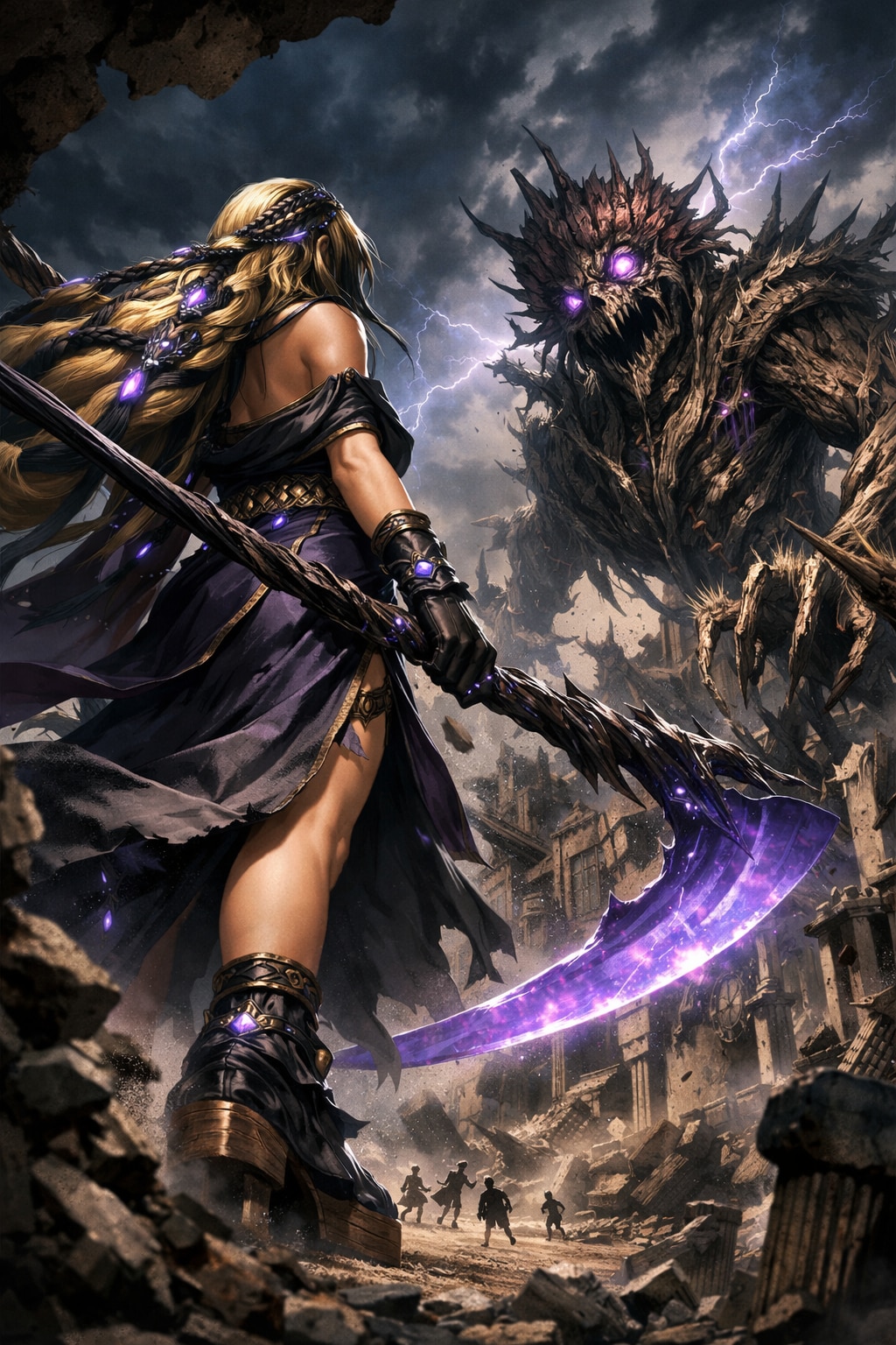長大な大鎌。刃は半透明の紫水晶で、魂を切り分けるとされる。
