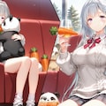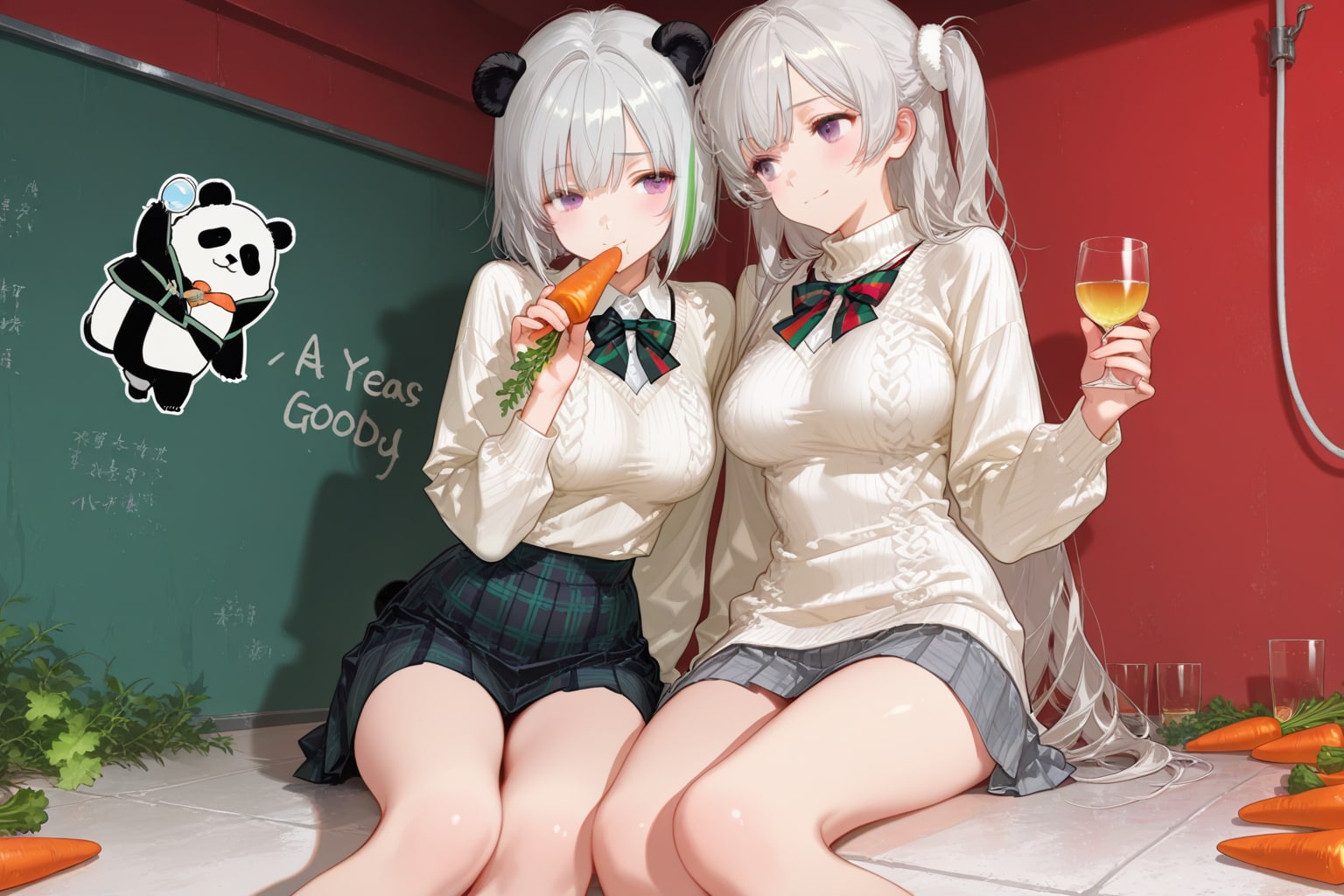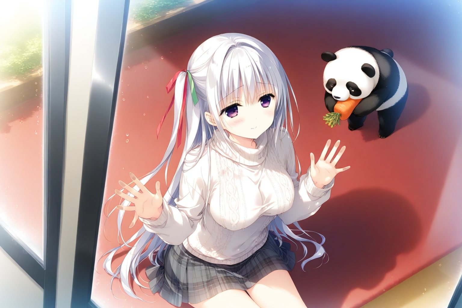 想定してたのはガラスを挟んで人参を食べてるパンダとうちの姫様が向かい合ってる絵だったんですけど、出来上がったのは