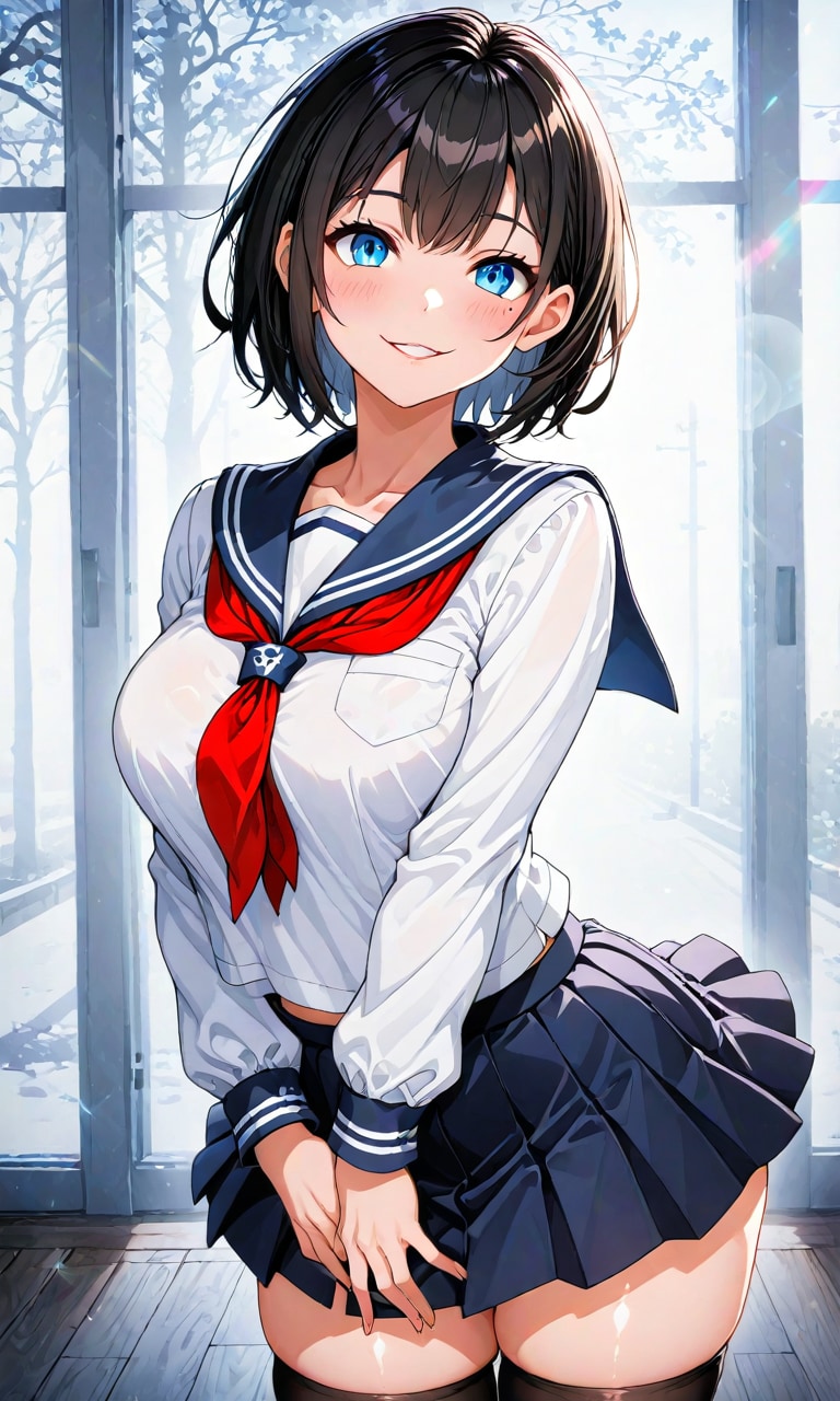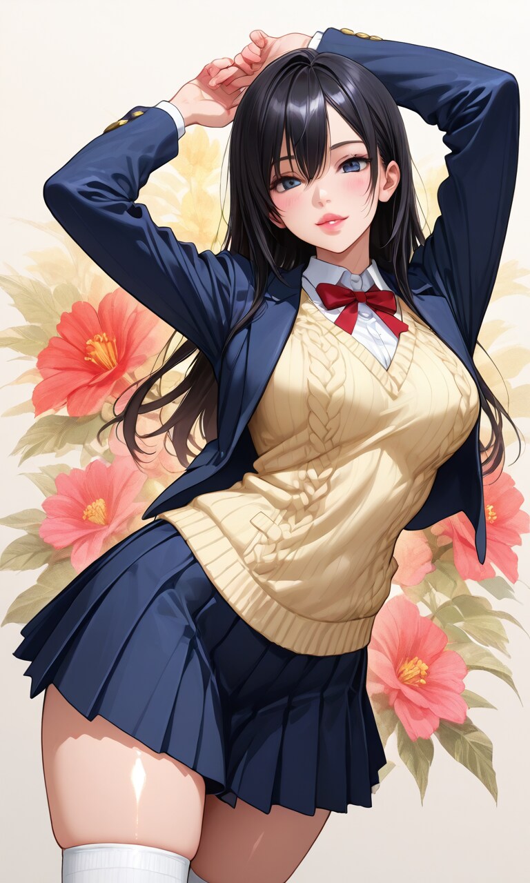 3種類の制服姿のJKを生成しました。カラフルな感じの制服の方が
