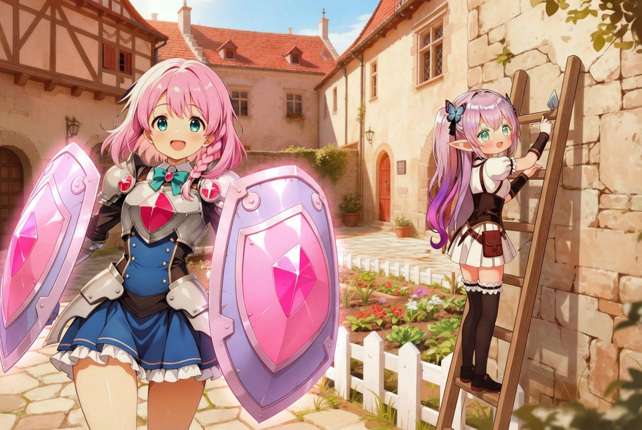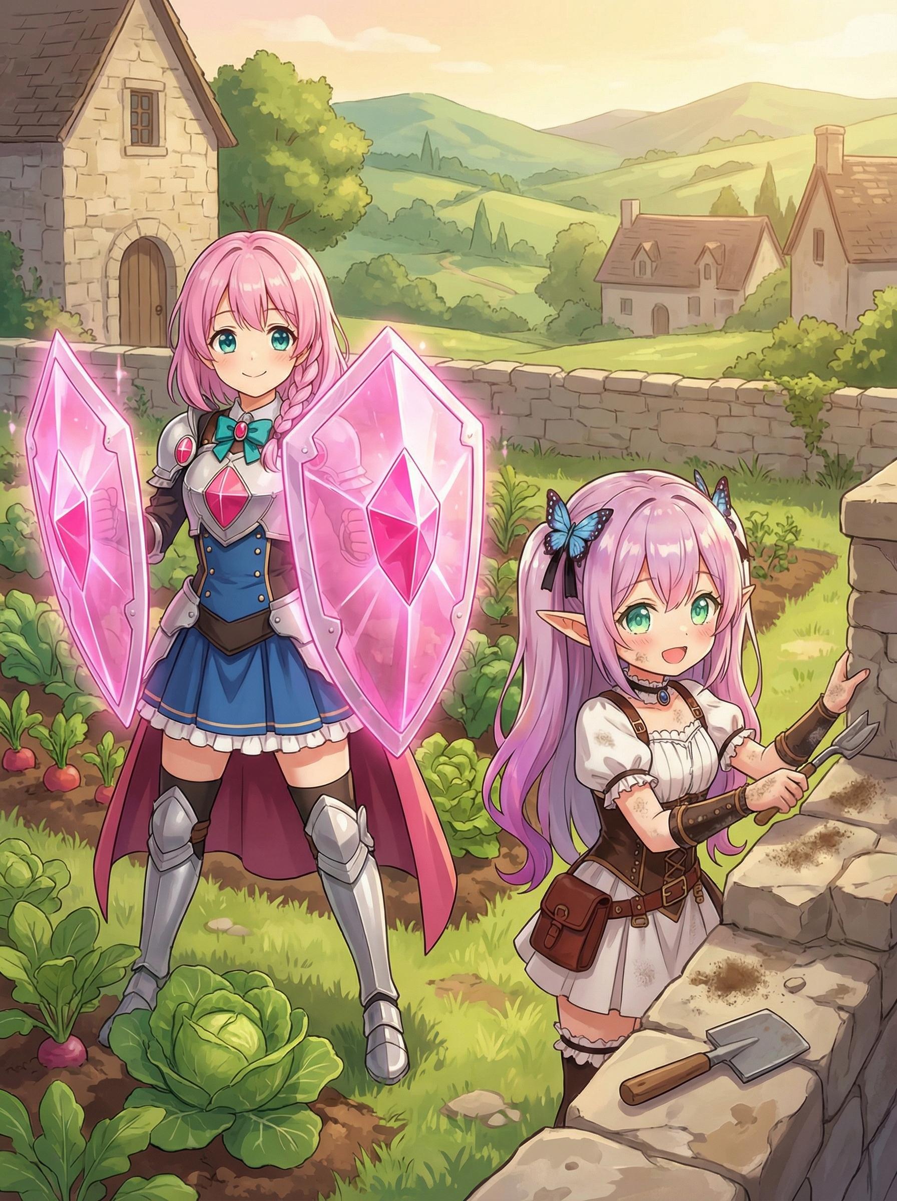 修繕作業するすみれちゃんと畑を守るタンクちゃん