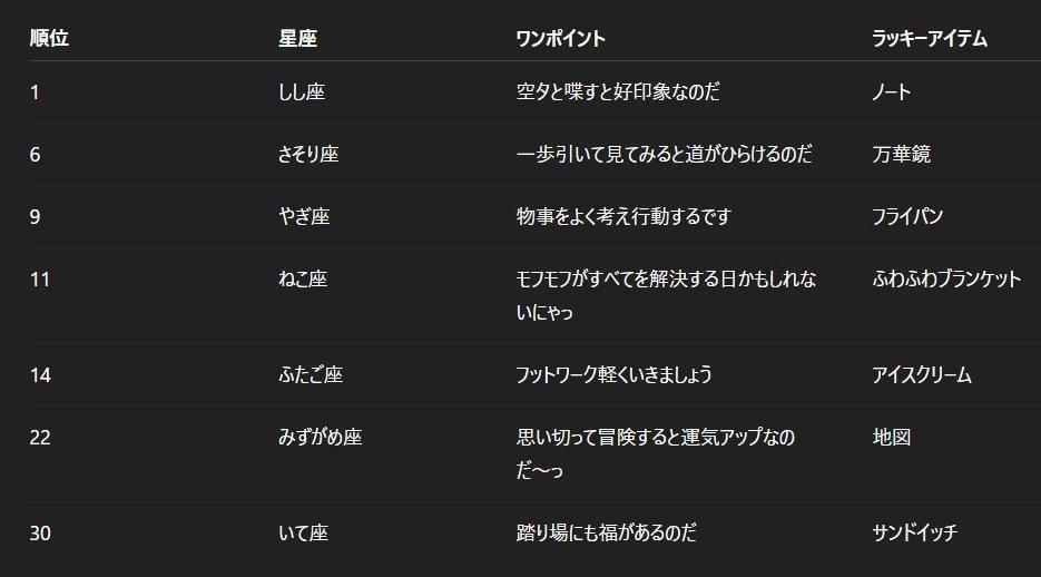 05/24の チャトピちゃん占い 2025/05/23 使用したAI ChatGPT #チャトピちゃん占い 毎日お昼ごろお届け、チャトピちゃん占いー 呪文 入力なし ねこなみさくら 9,602 投稿 フォロー 1,177 フォロワー 1,287 ねこなみさくらは下記が好きな方に効果があります猫/メイドさん/猫耳/ろりっ子/謎な物/くすっとしたい/日替わり画像投稿量が多いのでホームの閲覧がお勧めです呪文やネタの利用はご自由にーR-15・18もー↓いろいろまとめーhttps://www.chichi-pui.com/posts/7835be9f-d077-48bb-b2c8-bbcb1003bf19/ ねこなみさくらさんの他の作品 ねこなみさくらさんの他の作品 チャトピちゃん占い(02/14) ねこなみさくら ちゅーっ ねこなみさくら 日付を入れてみる 02/13 ねこなみさくら きょうのこはるさん2 ねこなみさくら きょうのオムライス(02/13) ねこなみさくら チャトピちゃん占い(02/14) ねこなみさくら ちゅーっ ねこなみさくら 日付を入れてみる 02/13 ねこなみさくら きょうのこはるさん2 ねこなみさくら きょうのオムライス(02/13) ねこなみさくら てててー、てってててー(02/13) ねこなみさくら