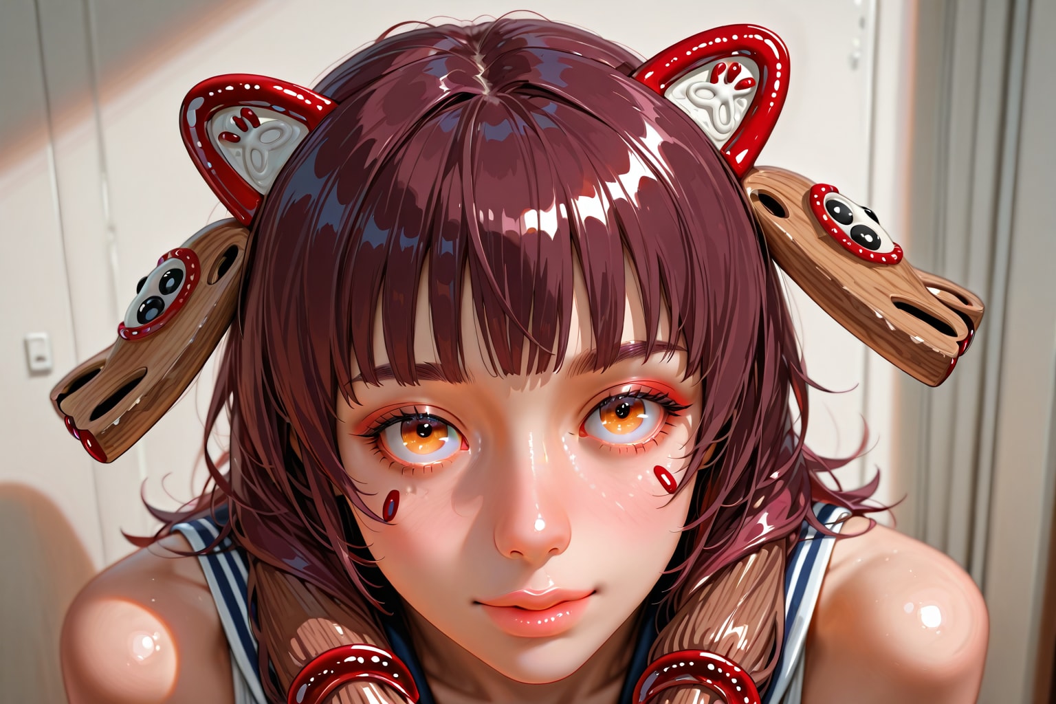 jacket partially removed, heart in eye, burnt clothes, holding fishing rod, kanji, doujin cover, pentagram, tape gag, adjusting headwear, red socks, friends, cloud print, coke-bottle glasses, oral invitation, competition school swimsuit, barbell piercing, gradient legwear, prisoner, blood on breasts, wind chime, carrying over shoulder, tape measure, flaming weapon