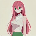 「点のような目」で描かれた姉モデルが視線を送る1枚。目立つピンク髪とシンプルな構図が、ポップで親しみやすい印象を演出します。