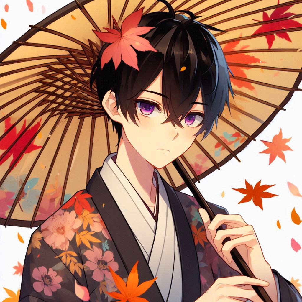 傘お題ということで、黒髪短髪男性でも生成してみました。