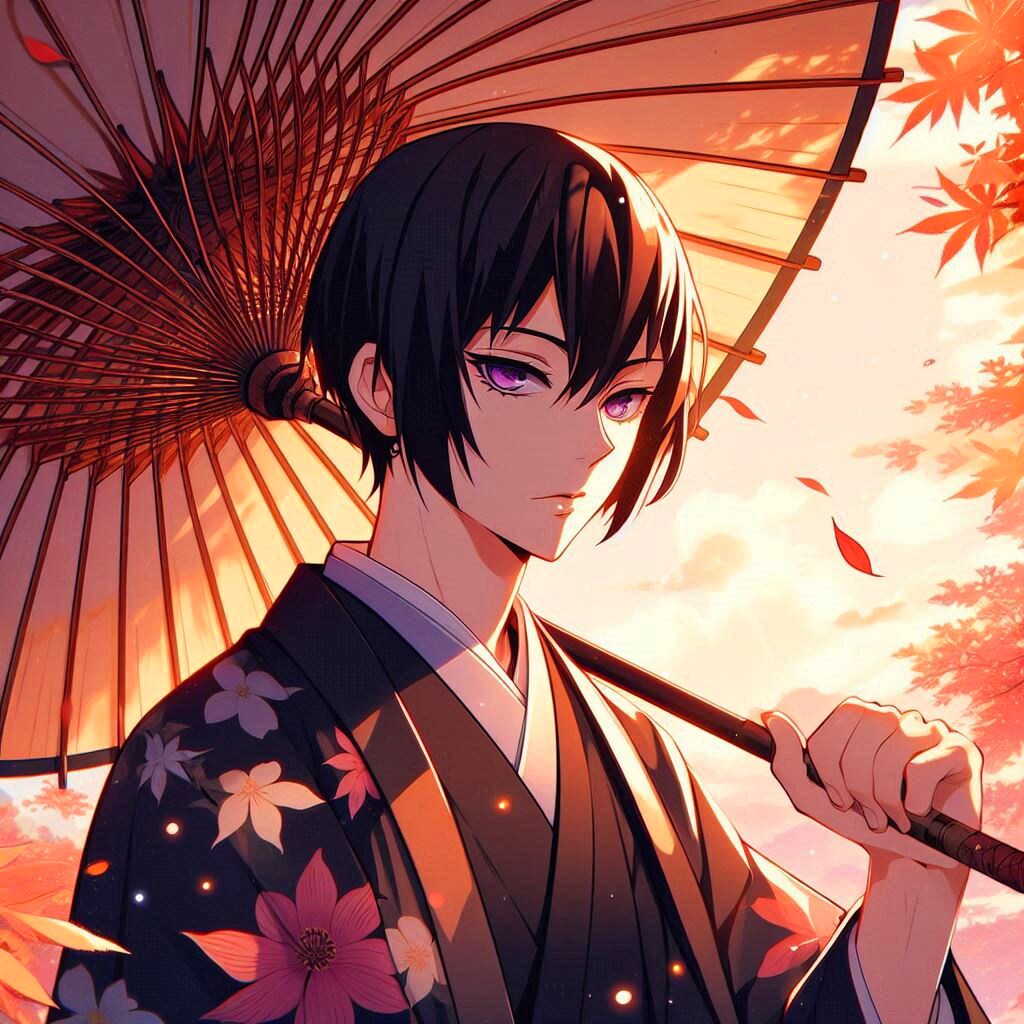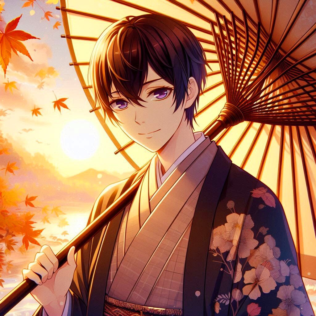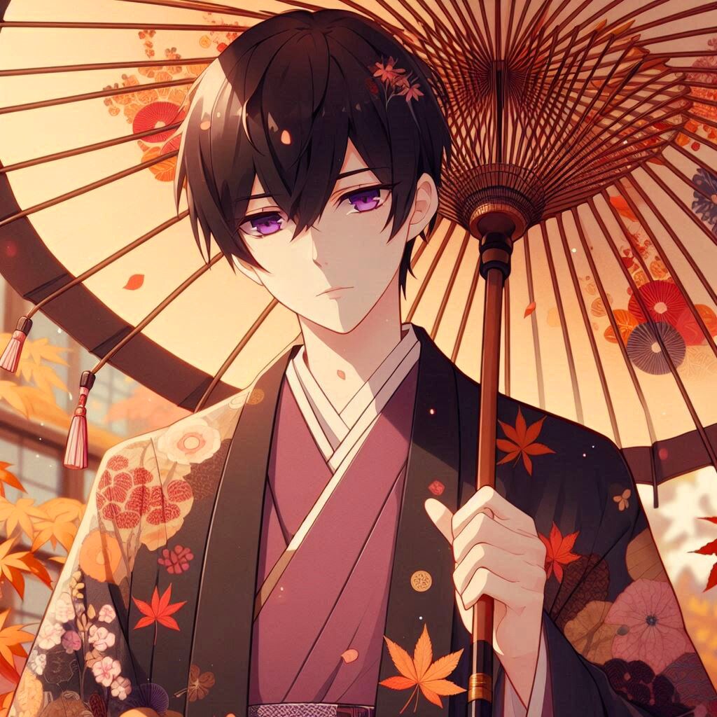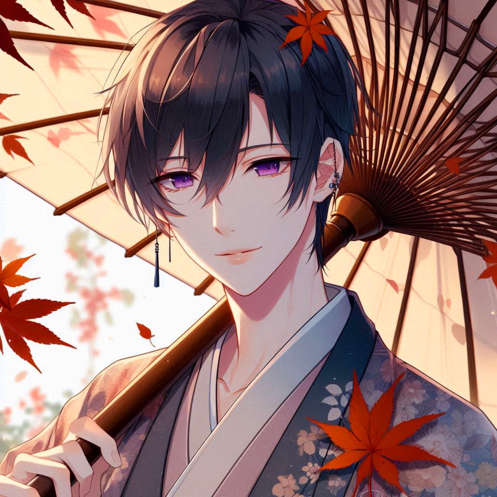 では、和傘と、黒髪短髪男性をご覧下さい*