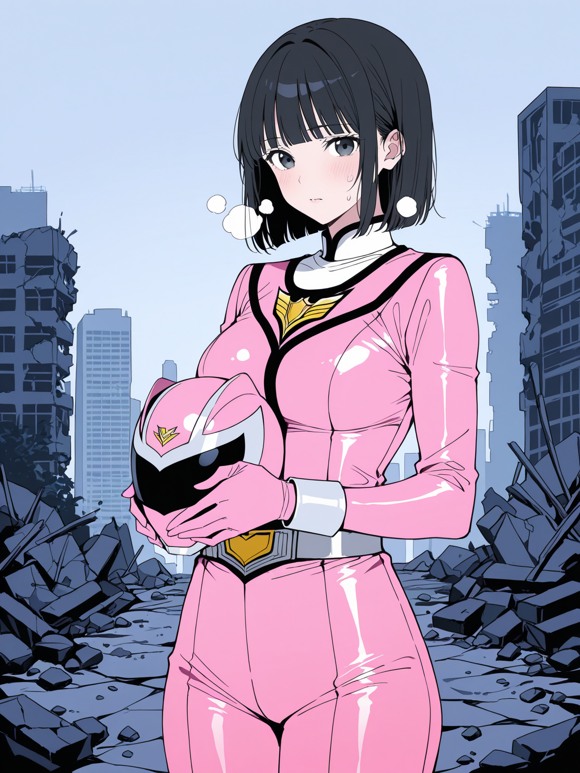 戦闘後にヘルメットを取った場面を表現してみました。