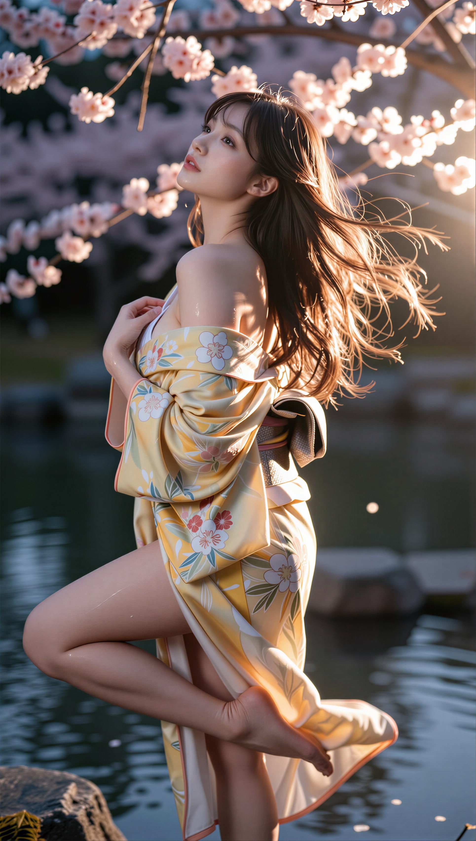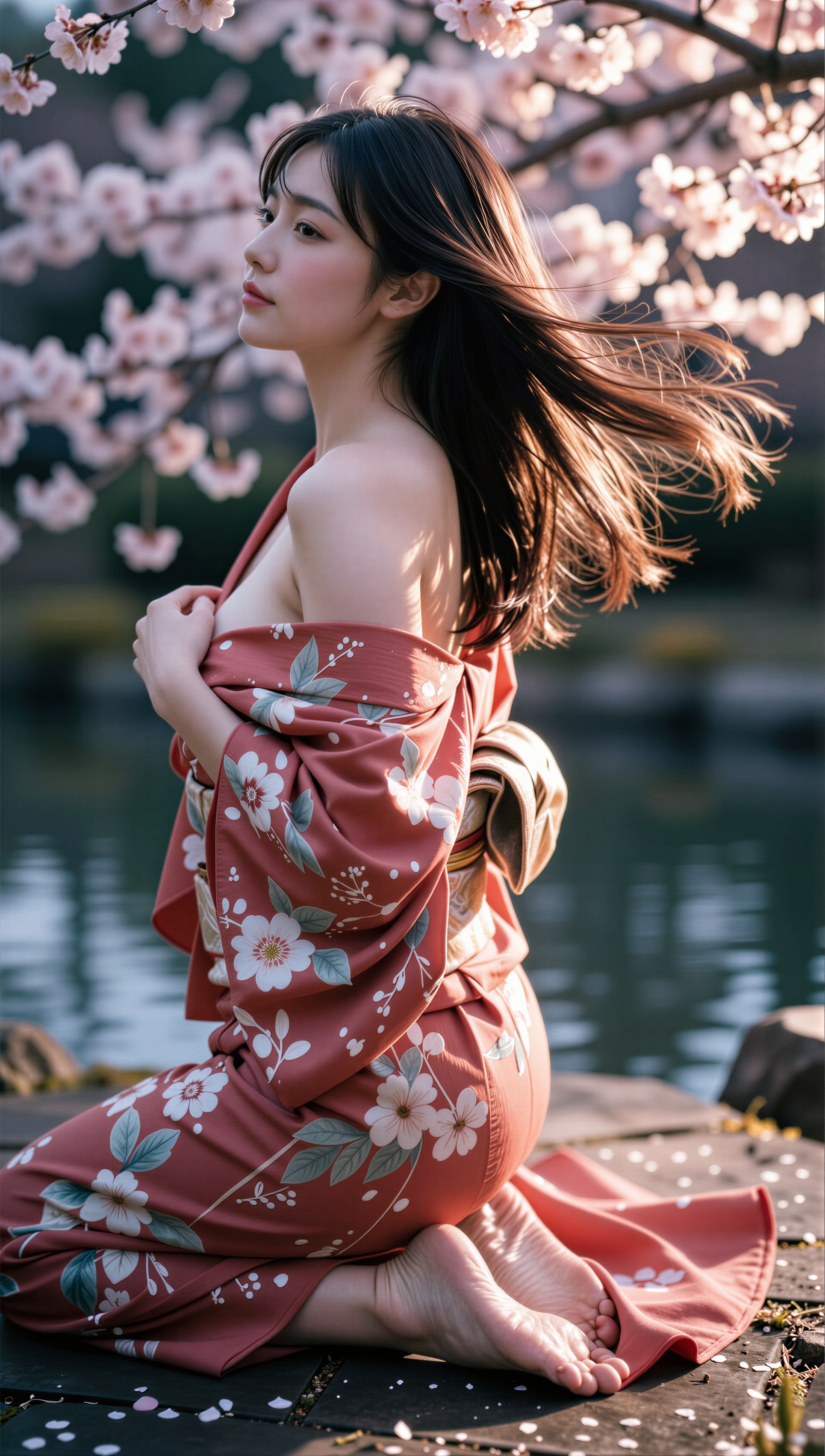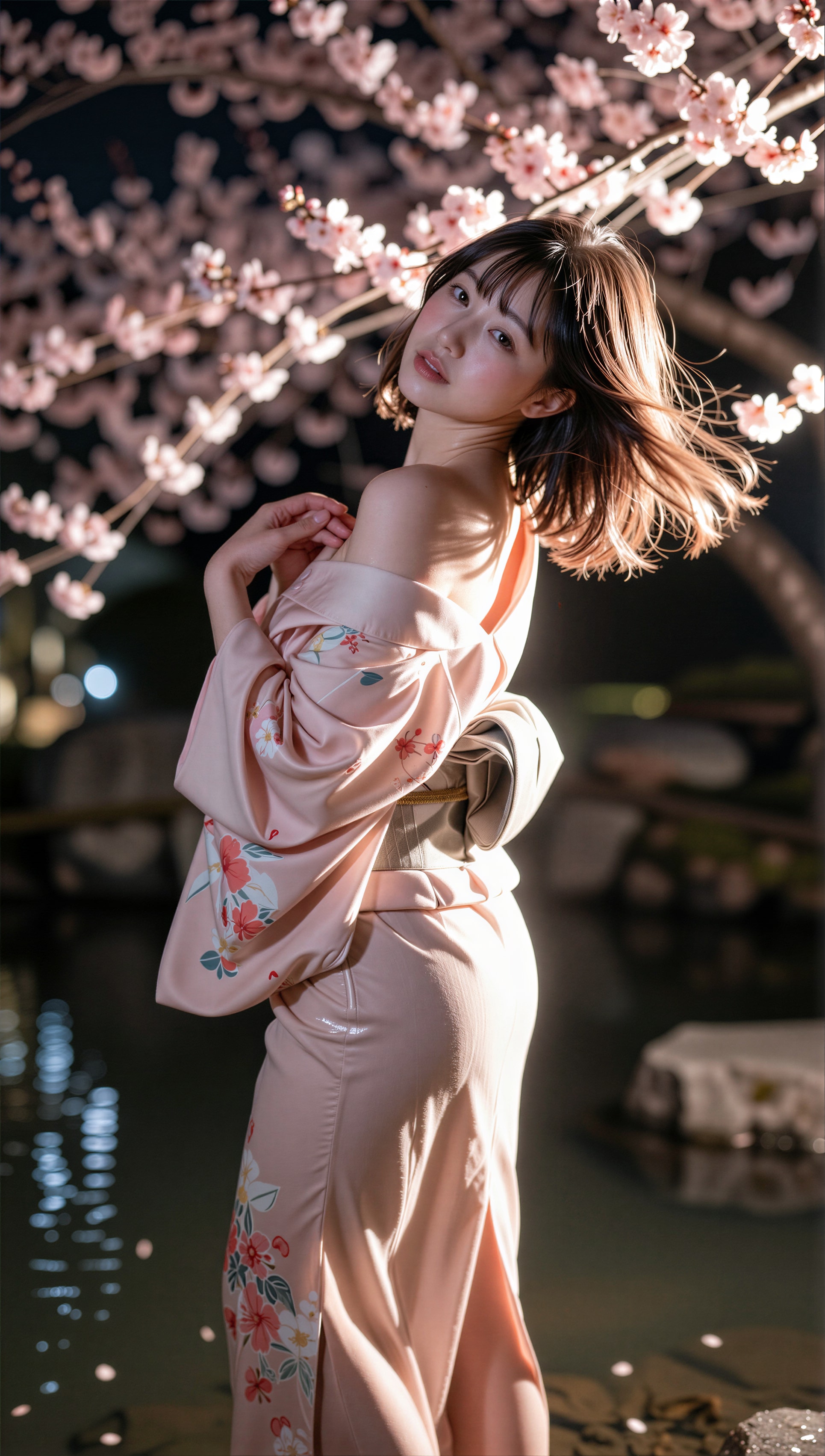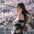 夜桜と着物