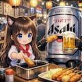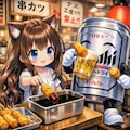 立食いの串カツを食べる小さな女の子