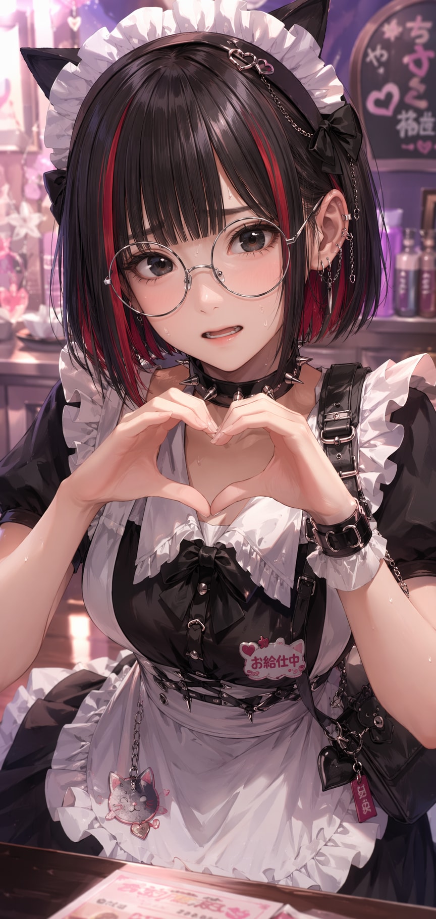jacket partially removed, heart in eye, burnt clothes, holding fishing rod, kanji, doujin cover, pentagram, tape gag, adjusting headwear, red socks, friends, cloud print, coke-bottle glasses, oral invitation, competition school swimsuit, barbell piercing, gradient legwear, prisoner, blood on breasts, wind chime, carrying over shoulder, tape measure, flaming weapon