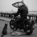 jacket partially removed, heart in eye, burnt clothes, holding fishing rod, kanji, doujin cover, pentagram, tape gag, adjusting headwear, red socks, friends, cloud print, coke-bottle glasses, oral invitation, competition school swimsuit, barbell piercing, gradient legwear, prisoner, blood on breasts, wind chime, carrying over shoulder, tape measure, flaming weapon