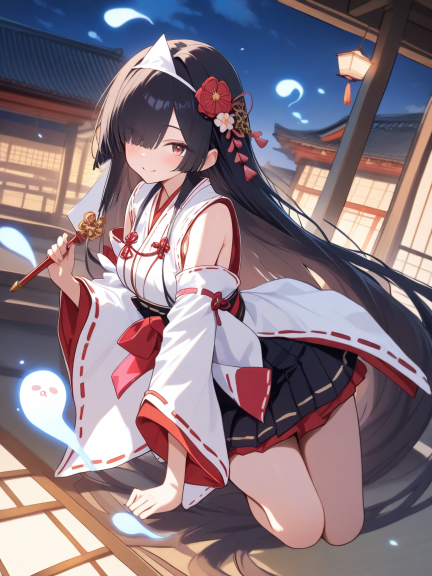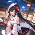 衣装に関しては、巫女でミニスカで袖分割で、とやったら、某ロングラン海戦ゲームのキャラクターに似てしまいましたね(苦笑)。