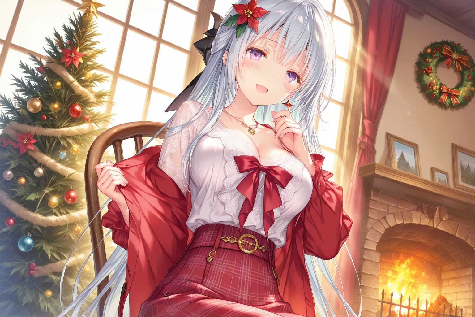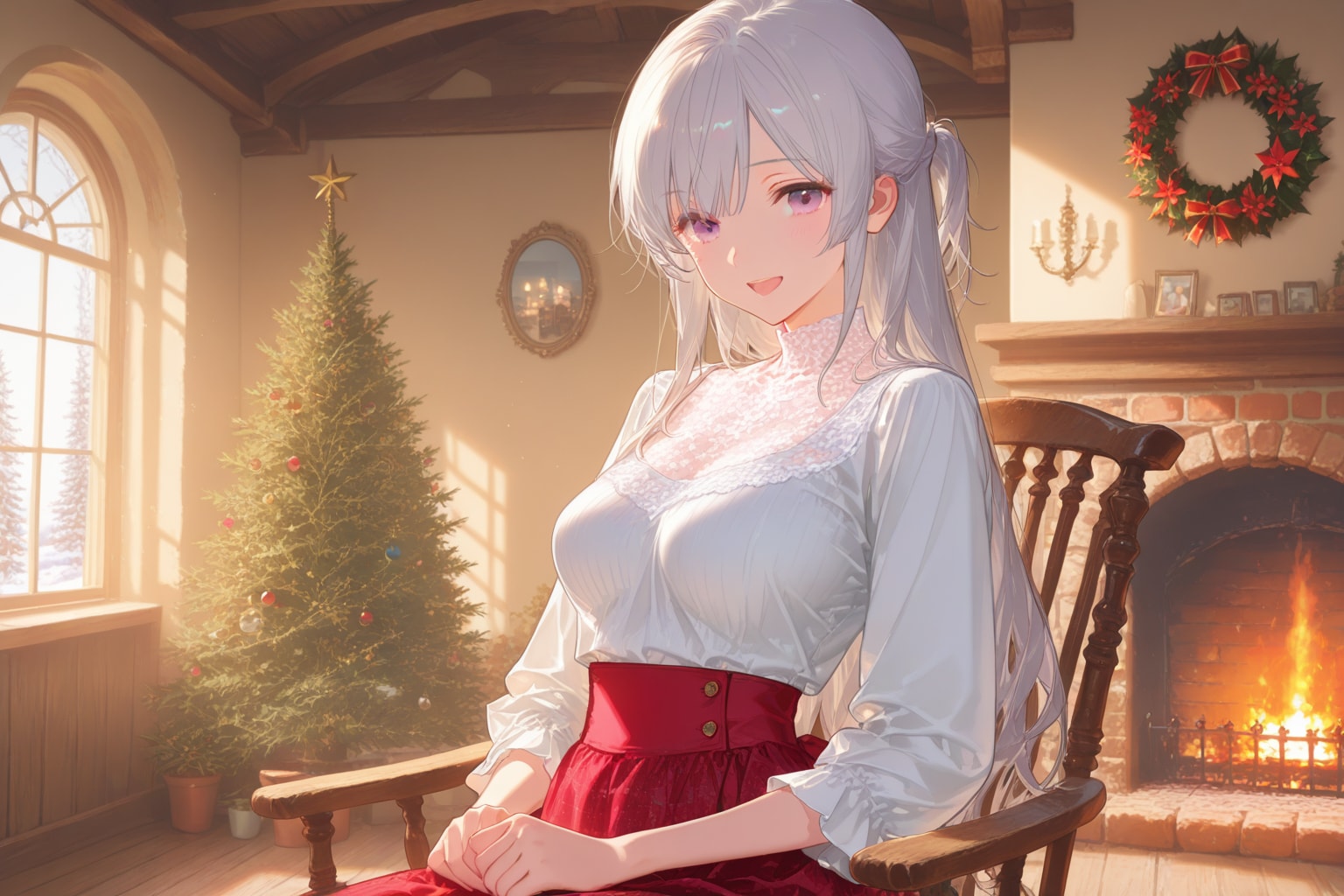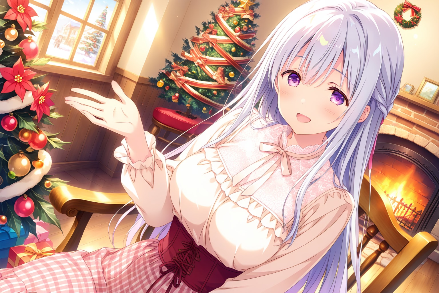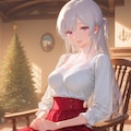 時期柄クリスマスのデコレーションの部屋で。今回もQILINで生成された画像の指が怪しい。きちんと5本で表現されることも
