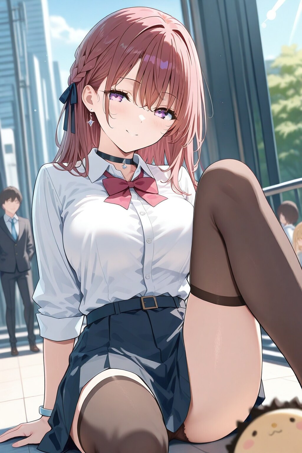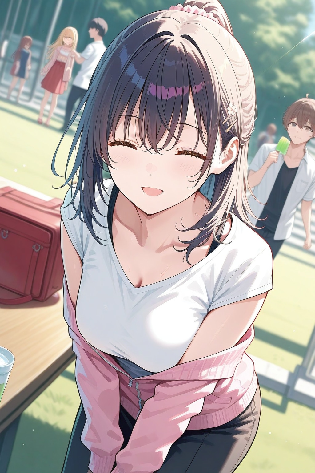 tied hair, bending, big breast, brother,