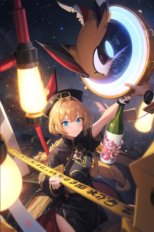antique space, holding yellow art object, alcohol object,
