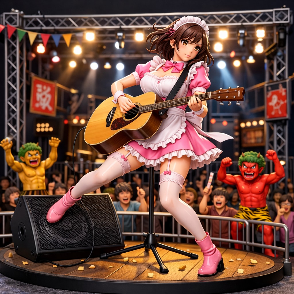 プロンプト欄に表記したように1枚目にフィギュア化するイラスト、2枚目にはGemini等でフィギュアイメージで完成したイラストをアップロードし生成しました。(それでも顔など一部はアニメ調になりがち。ChatGPT自体にも相談しながら生成してるんですがまだまだ工夫中)