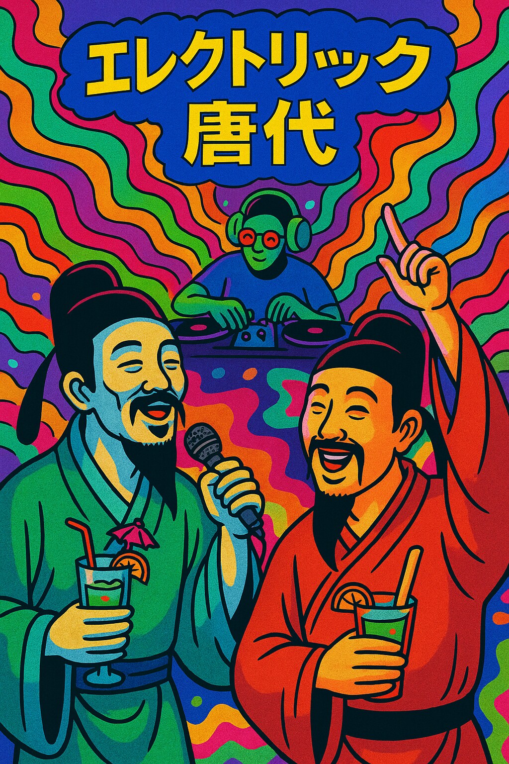 SunoAIで作成した「エレクトリック唐代」という曲のカバーアートを作ってみました。