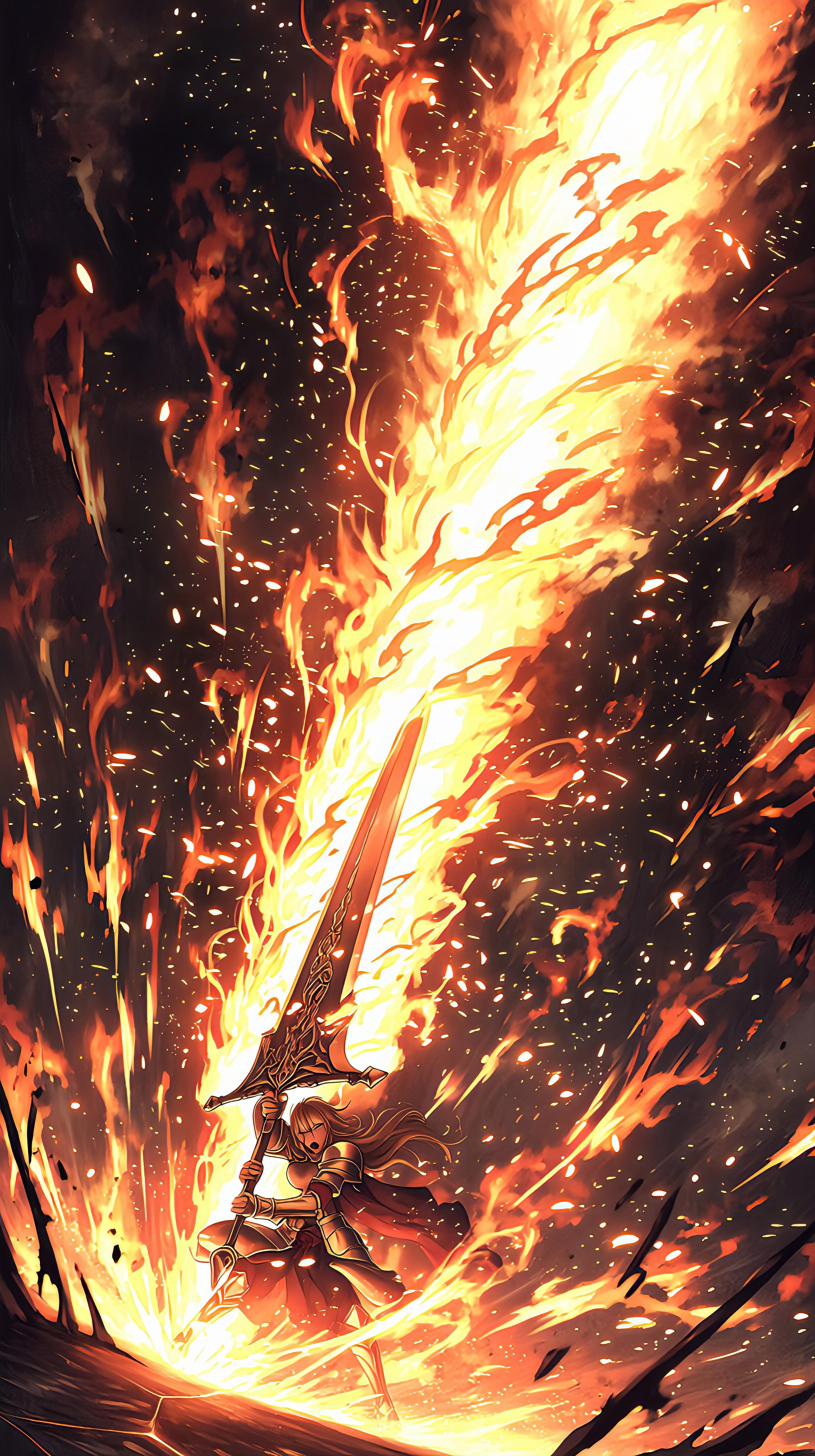 古の予言が現実となる夜、炎の力を宿した剣士が闇の軍勢に立ち向かう。巨大な剣から迸る業火が大地を焦がし、運命の戦いが始まる。彼女の瞳に映るのは、失われた故郷の記憶と、未来への希望。剣を振り下ろす一瞬に、世界の命運が懸かる。炎の渦巻く中、英雄の冒険が今、幕を開ける。