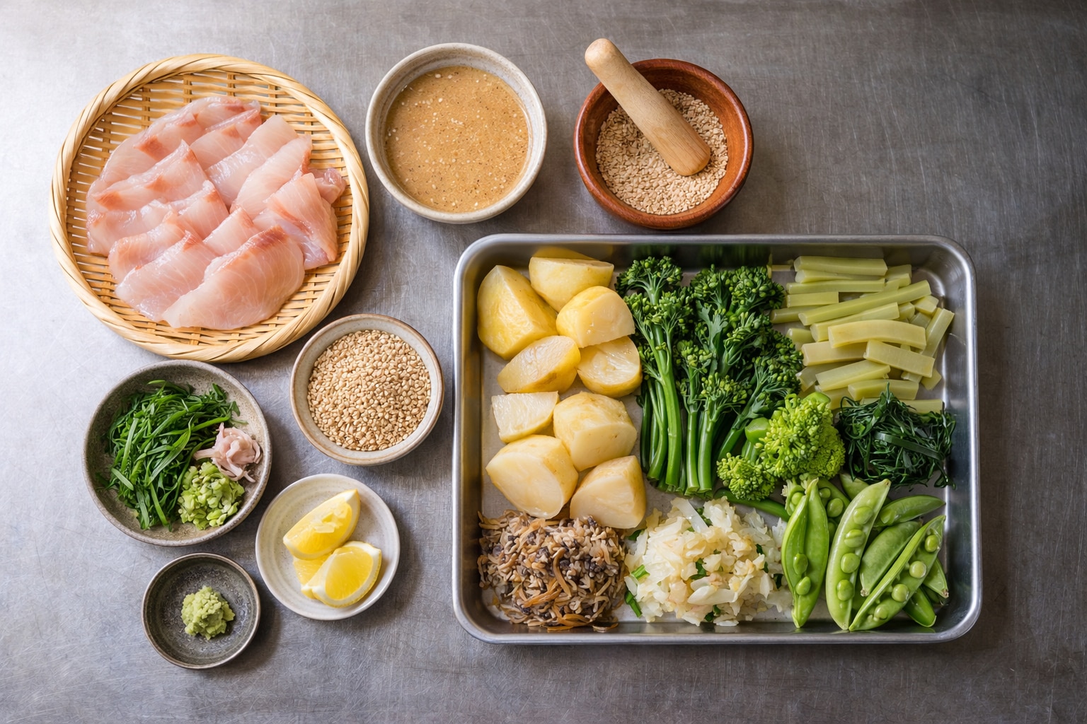 桜鯛の淡い旨み、胡麻だれの香ばしさ、春野菜の穏やかな含み。