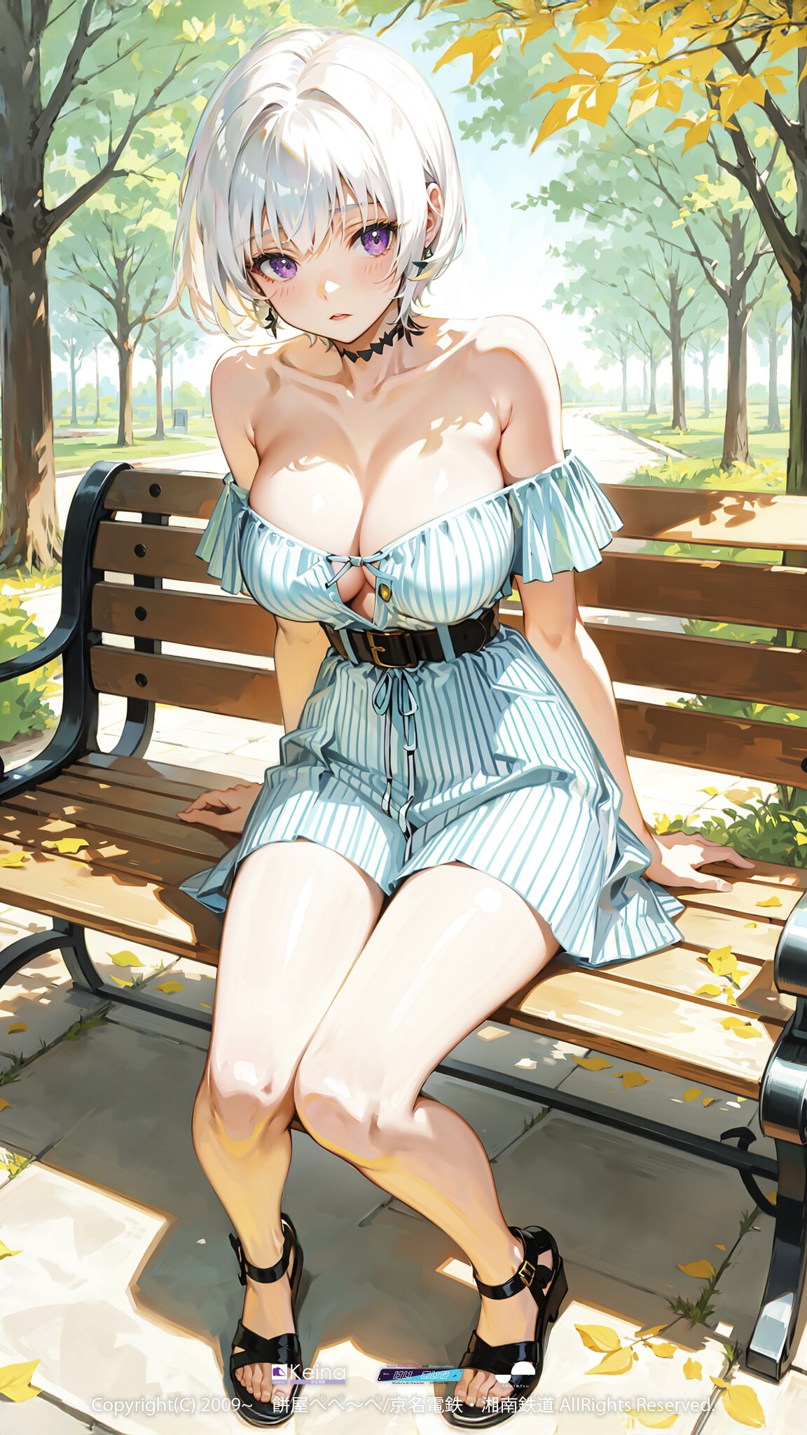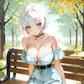 ベンチに座る弊社キャラクター【けい あいな】