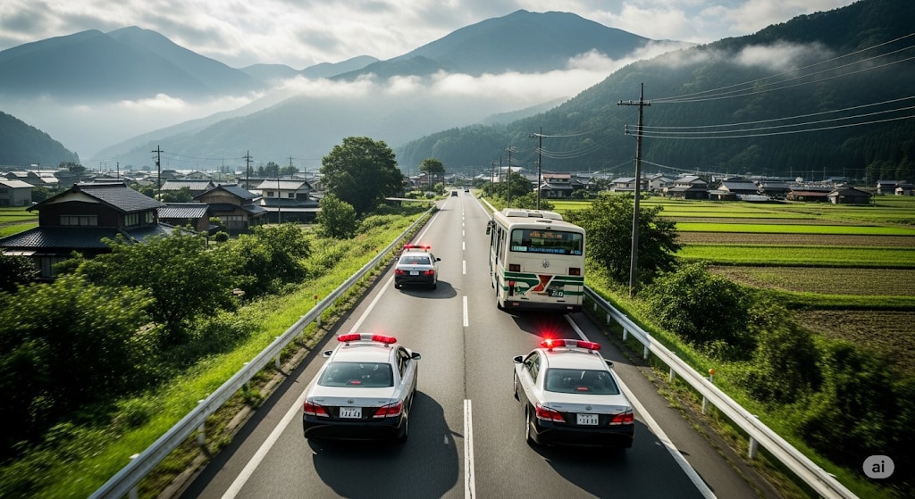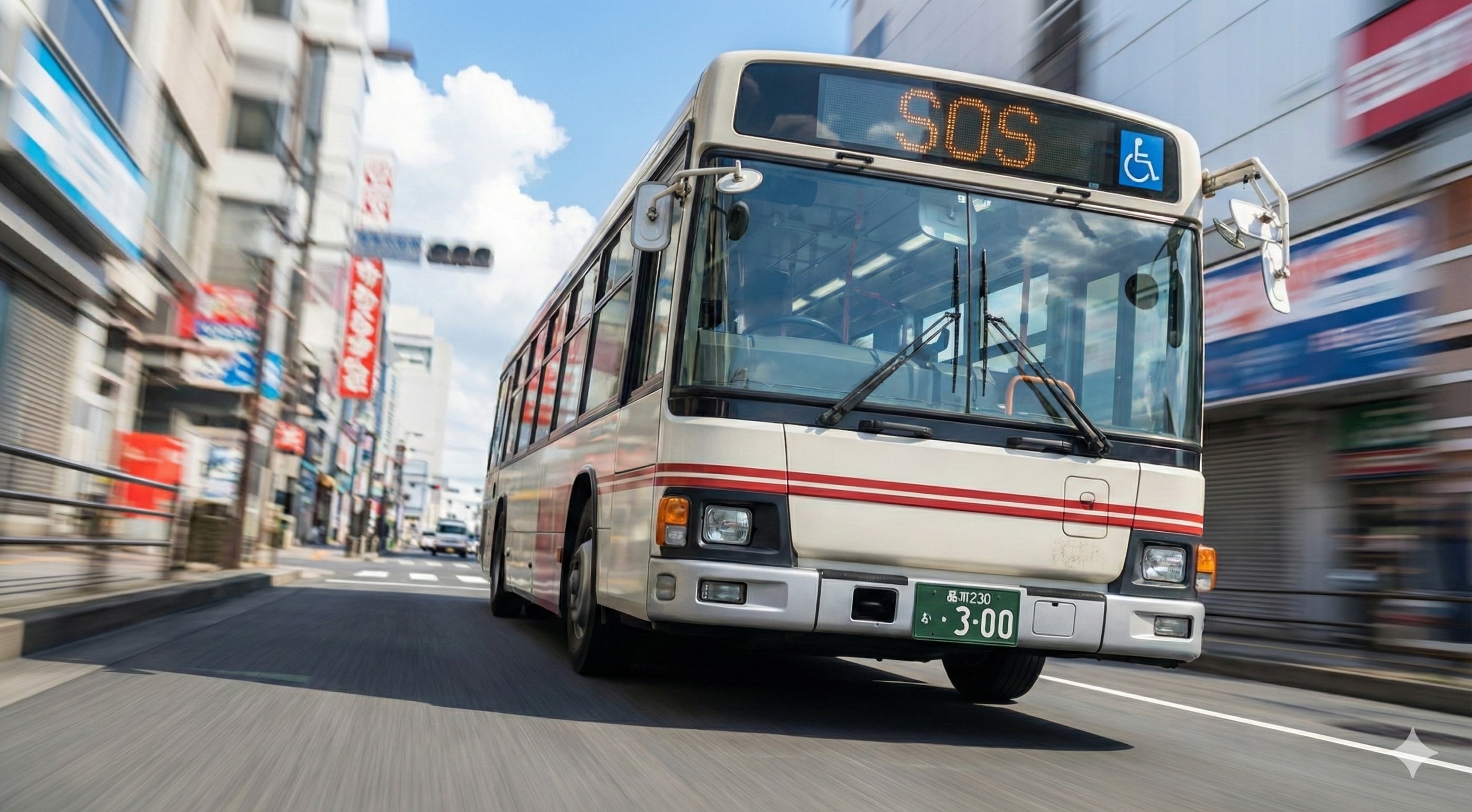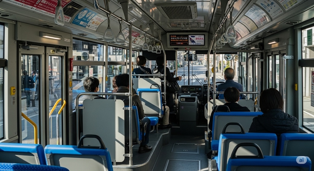 日本のどこにでもある地方都市を走る路線バス。