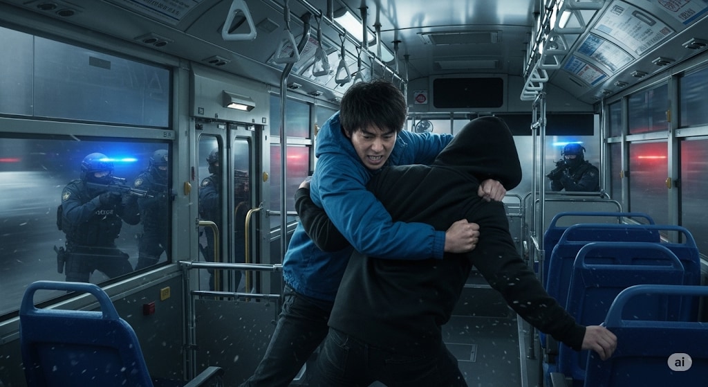 バスジャックに巻き込まれた乗客の一人として警察突入までの数時間を体験します。