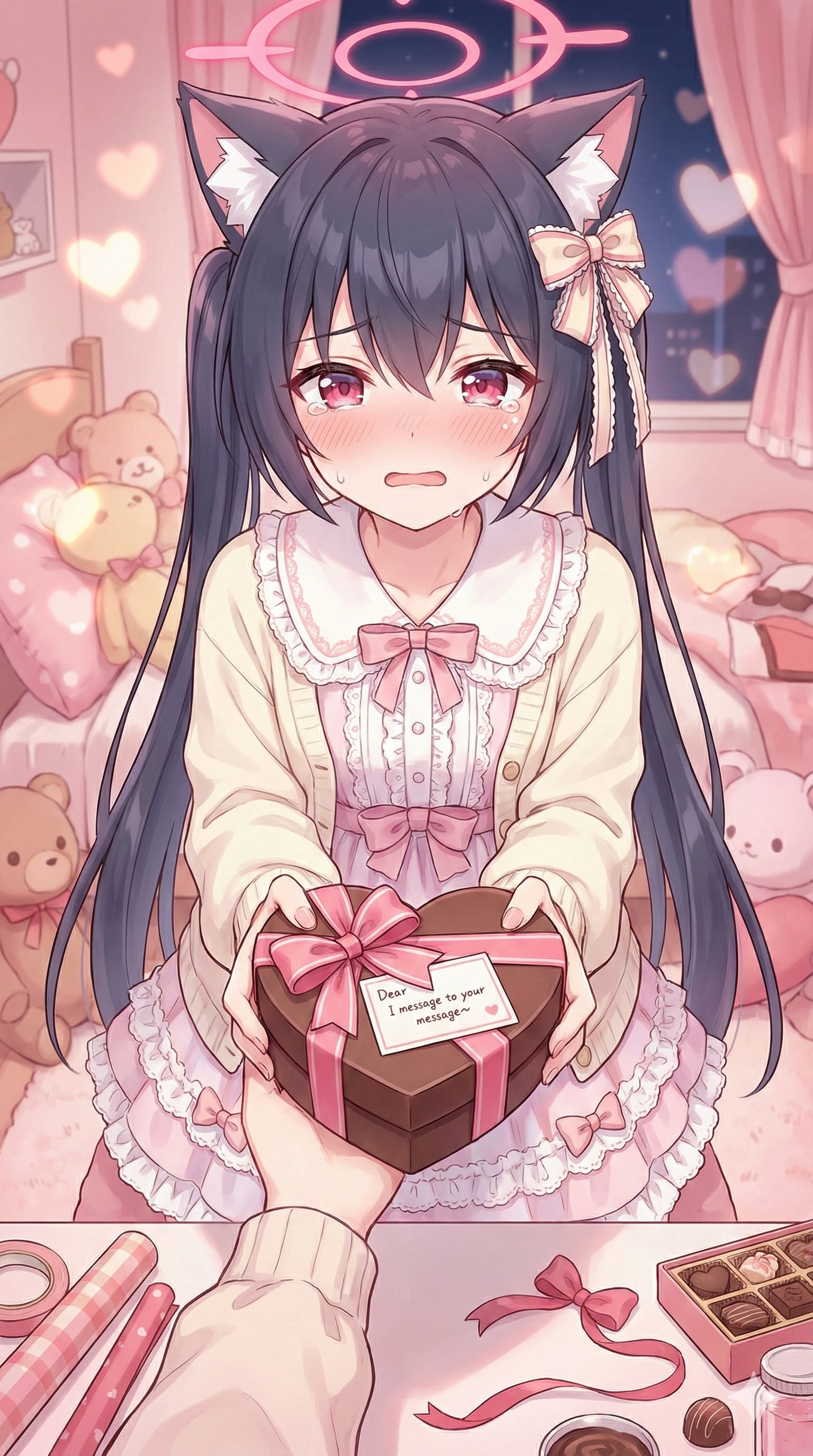 2/14 バレンタインデーに作成したイラストです!先生への大好きという気持ちと、チョコを渡す緊張感からみんなほんのり泣き顔