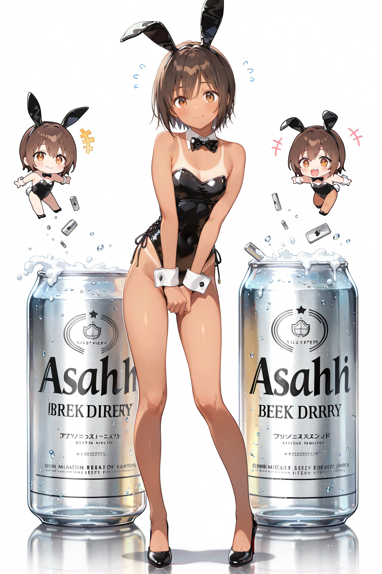 ちびキャラバニーさんとアサヒスーパードライをちょっとコミカルな感じに仕上げました。