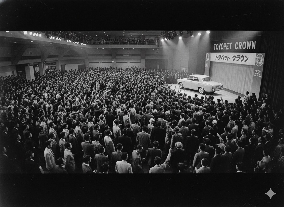 今から70年近く前、1955年の1月7日、豊田自動車(当時)がトヨペット・クラウンを発表なさいました。この日、彼らはただの新型車を出したわけではございません。日本の「移動」という文化に、後の呪文となる概念を埋め込んだのです。