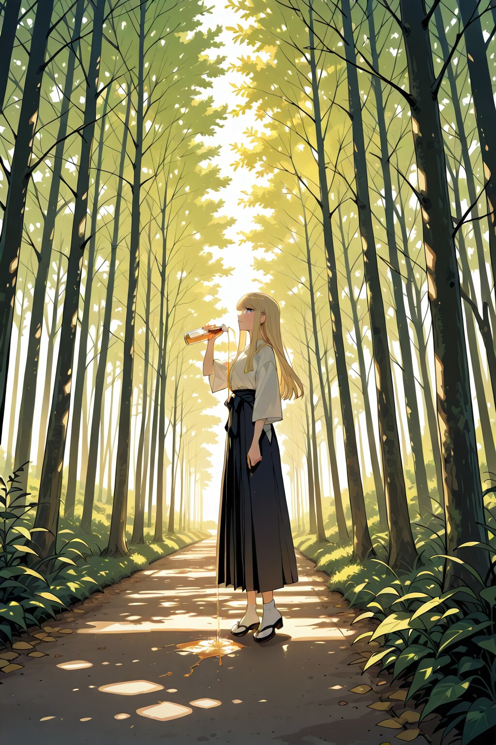 優しく振り注ぐ木漏れ日が斑に君を照らす