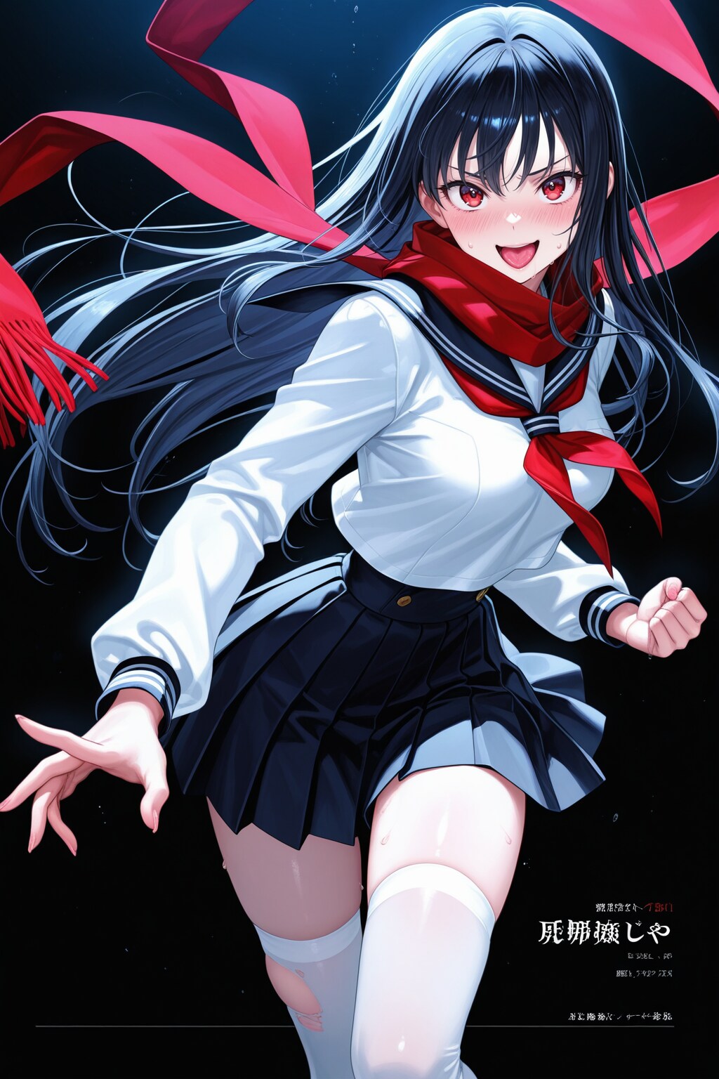 jacket partially removed, heart in eye, burnt clothes, holding fishing rod, kanji, doujin cover, pentagram, tape gag, adjusting headwear, red socks, friends, cloud print, coke-bottle glasses, oral invitation, competition school swimsuit, barbell piercing, gradient legwear, prisoner, blood on breasts, wind chime, carrying over shoulder, tape measure, flaming weapon