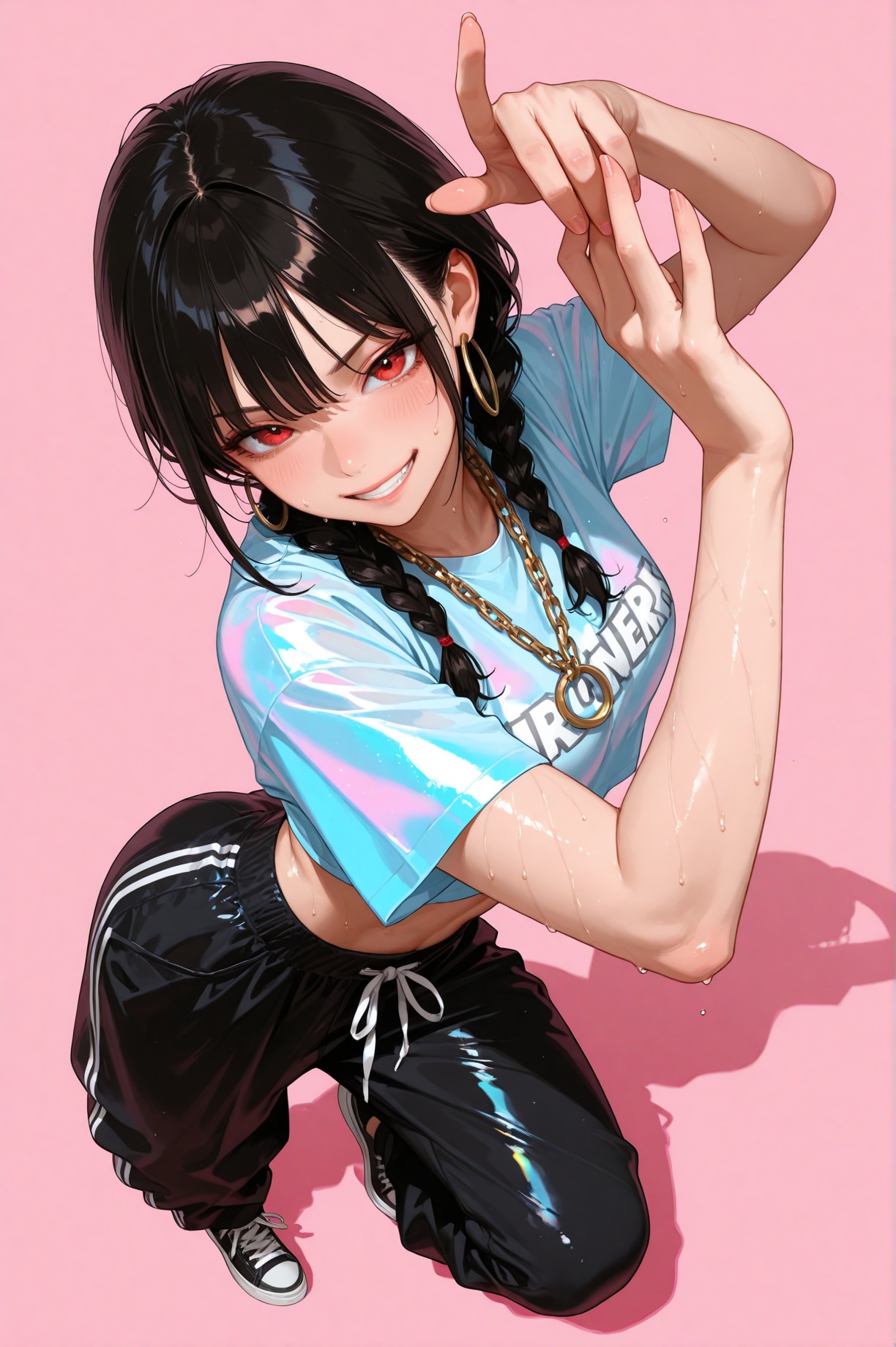 jacket partially removed, heart in eye, burnt clothes, holding fishing rod, kanji, doujin cover, pentagram, tape gag, adjusting headwear, red socks, friends, cloud print, coke-bottle glasses, oral invitation, competition school swimsuit, barbell piercing, gradient legwear, prisoner, blood on breasts, wind chime, carrying over shoulder, tape measure, flaming weapon