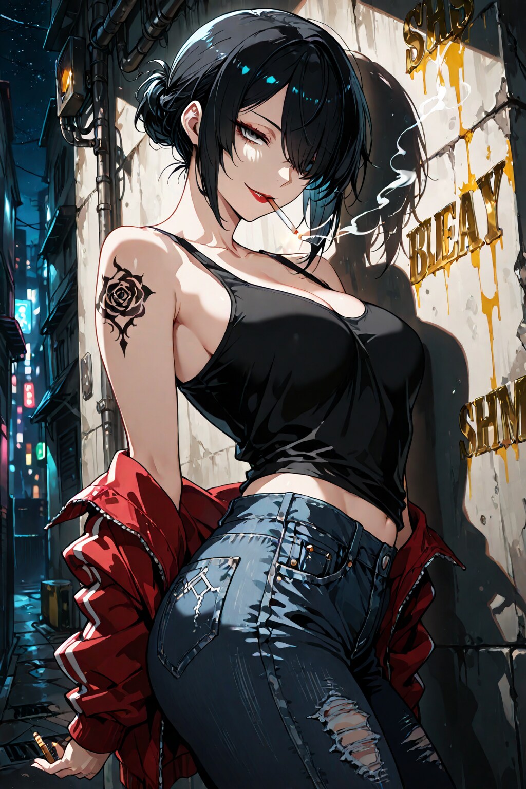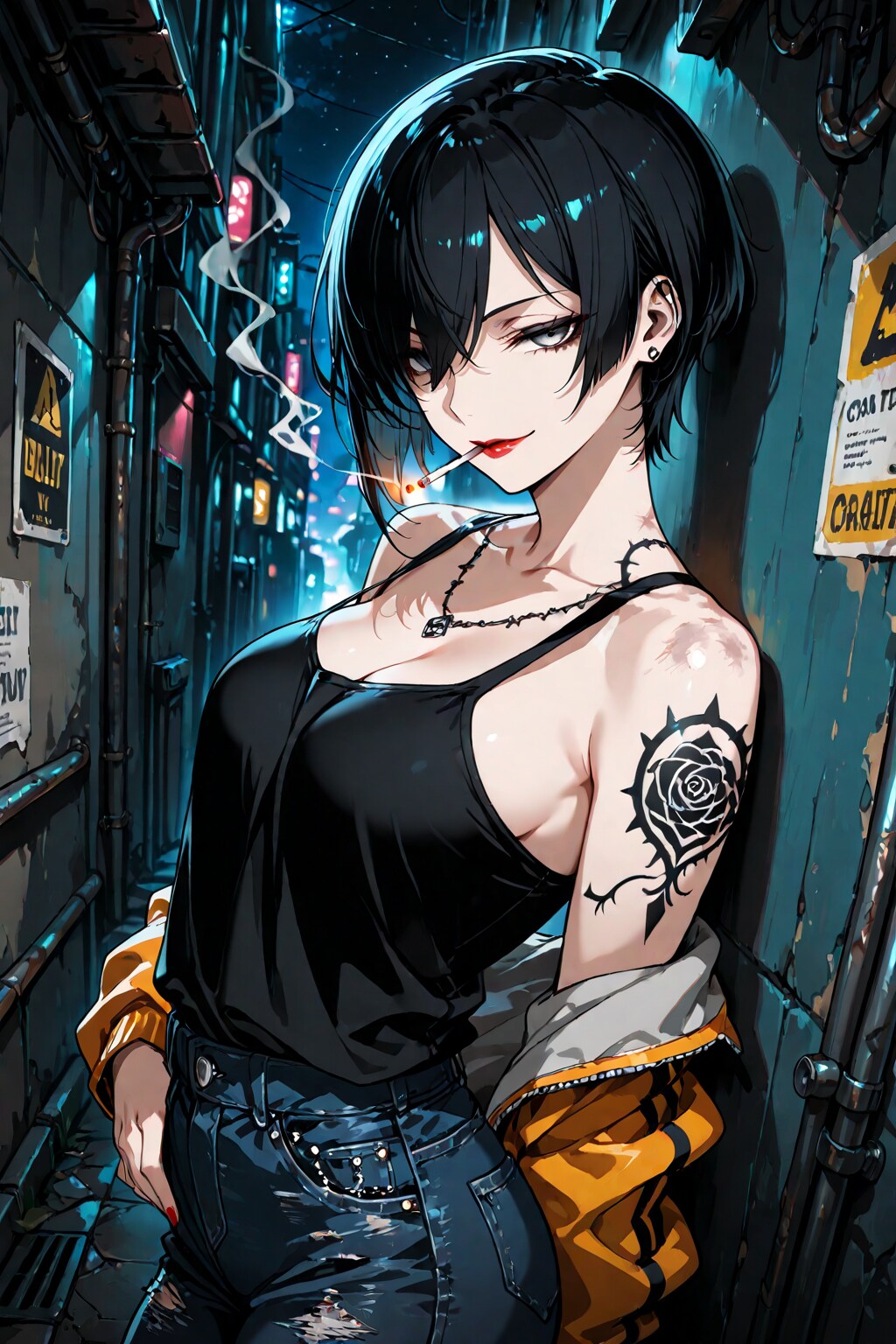 jacket partially removed, heart in eye, burnt clothes, holding fishing rod, kanji, doujin cover, pentagram, tape gag, adjusting headwear, red socks, friends, cloud print, coke-bottle glasses, oral invitation, competition school swimsuit, barbell piercing, gradient legwear, prisoner, blood on breasts, wind chime, carrying over shoulder, tape measure, flaming weapon
