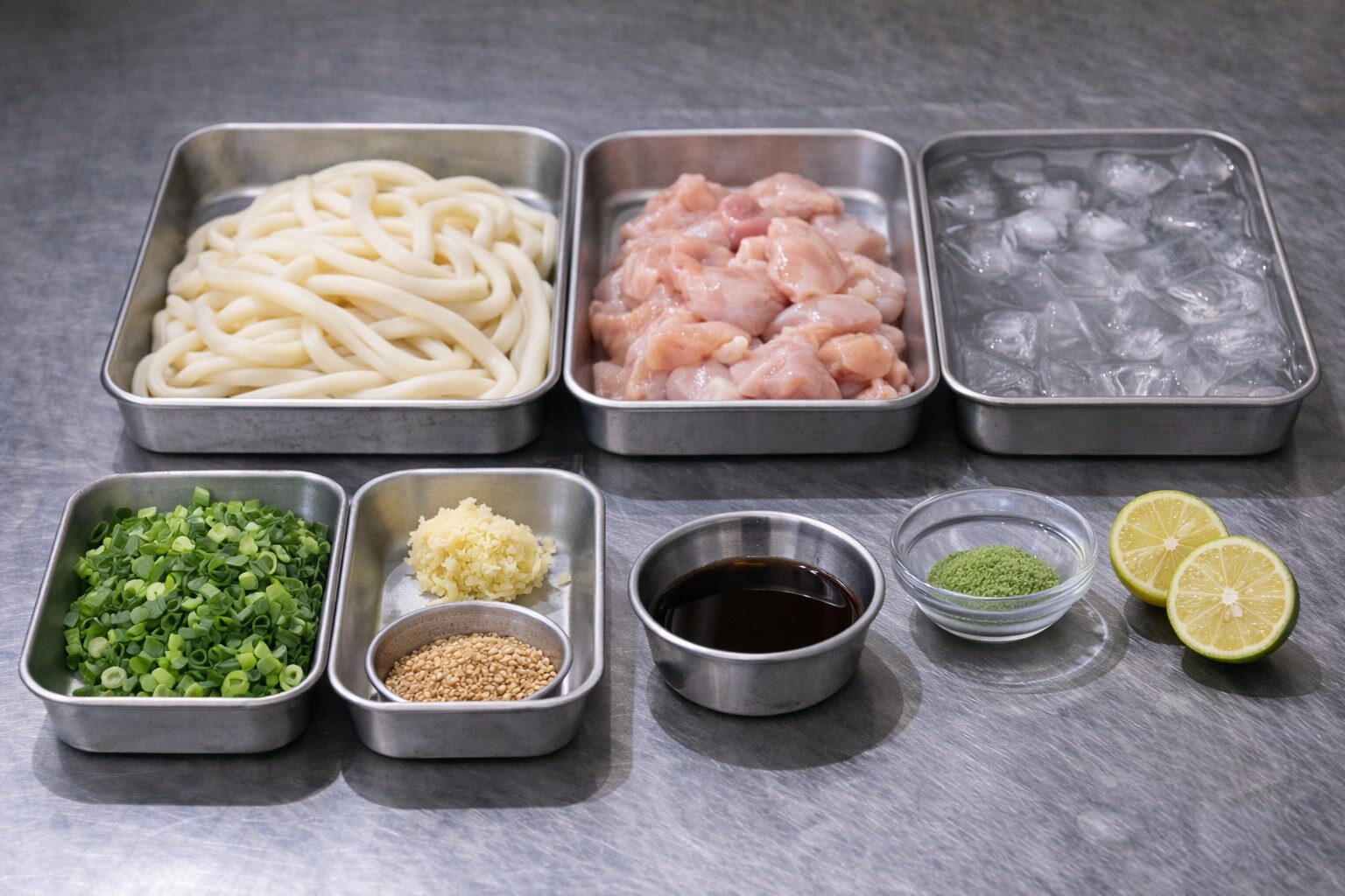 うどんと鶏天を交互に口へ運ぶと、自然にリズムができる。冷の締まりで舌が整い、揚げの香ばしさで食欲が戻る。薬味と柑橘を少し絞れば、油の余韻が消えて、また一口が新しい。レモン(あるいはすだち)の役目は、味を変えるというより“後味を整える”ことにあるのだと、改めて思う。