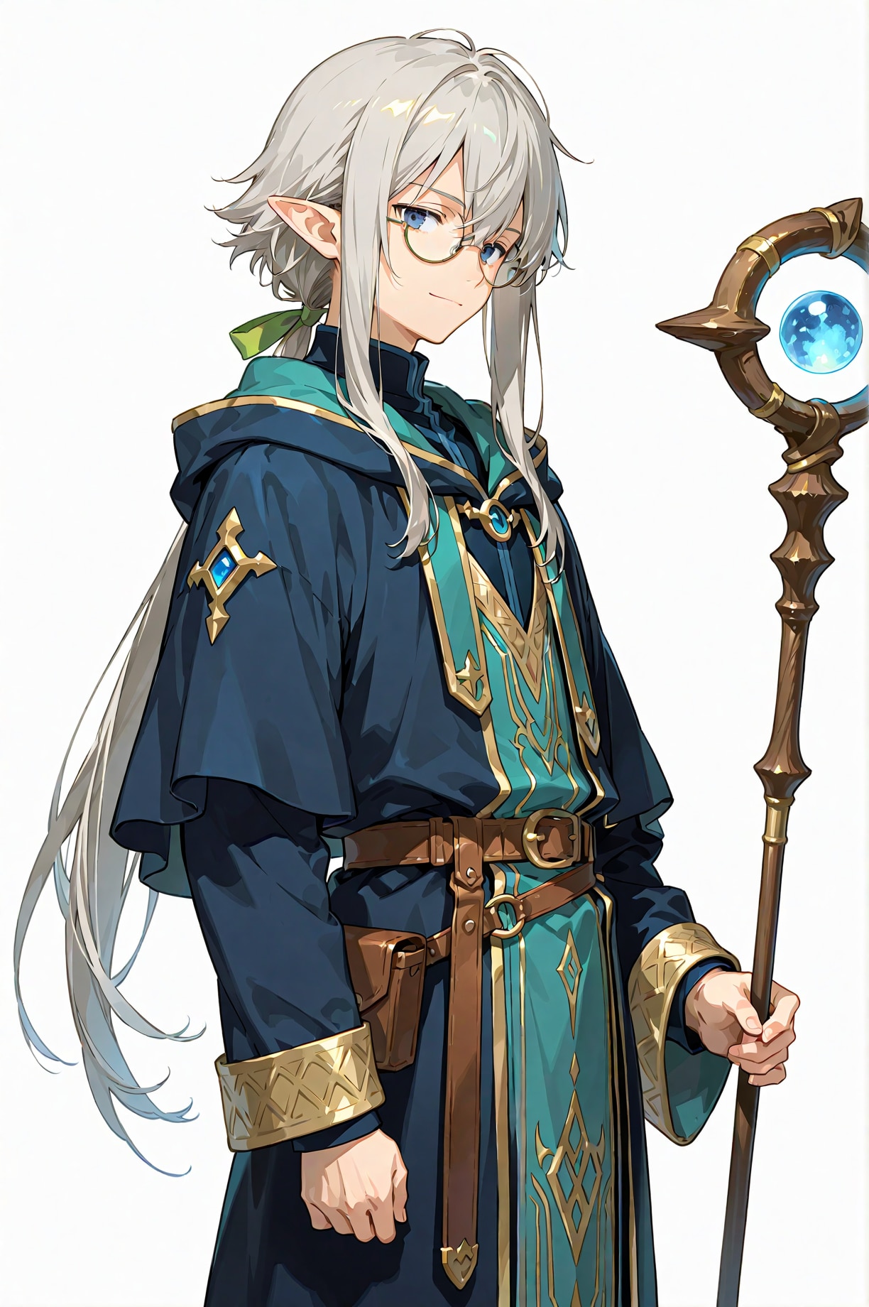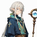 オルウェン:混血の印の灰色の髪、知識への渇望に静かに燃える群青の瞳(指定はdeep blue)、目の指定が広がってなんとなくローブも青系が多い