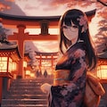 夕焼けが、境内をオレンジ色に染めていた。