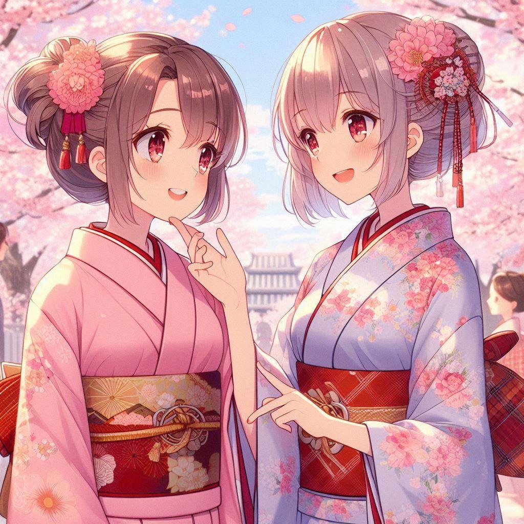 姉妹が著物貸し借り花の旅