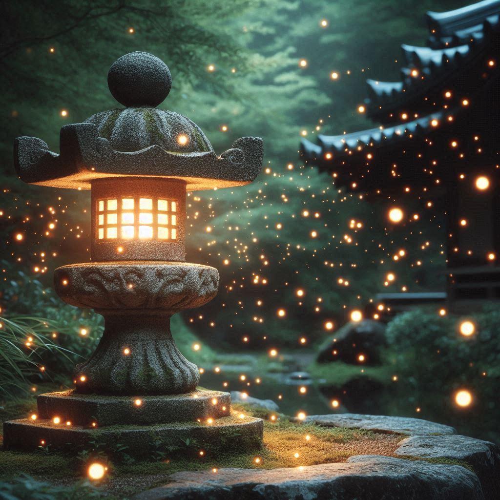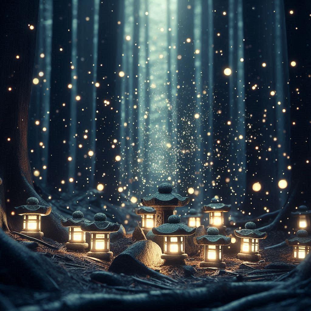 ①②光が幻想的な石灯籠なフォトですね。②は光るキノコみたいです😄