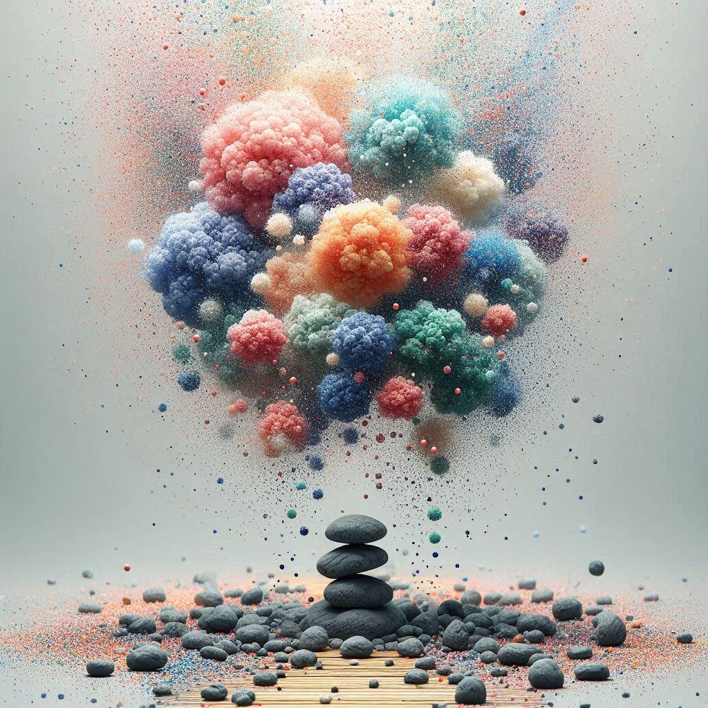 ③④「パーティクル」のみで生成。パーティクル=粒子なので、粉がいっぱい出てきました。