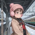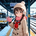 猫乃つづりさんの列車の旅路企画参加投稿になります。かなり前ですが駅のホームと列車内と2つ電車をネタに画像を作ったことがありまして、今回は駅のホームでの画像を作ってみました。委員長ちゃんが雪が普通に積もってるくらいの山間の田舎の面白い取り組みを行っている図書館を視察した、という設定ですね。企画にある「旅路」とかちょっとテイストが違うかとは思いますが。