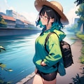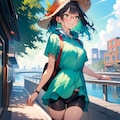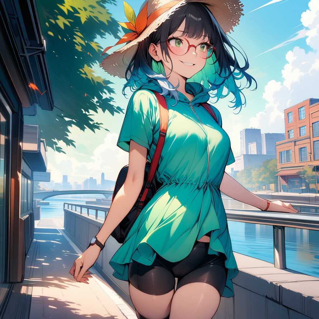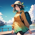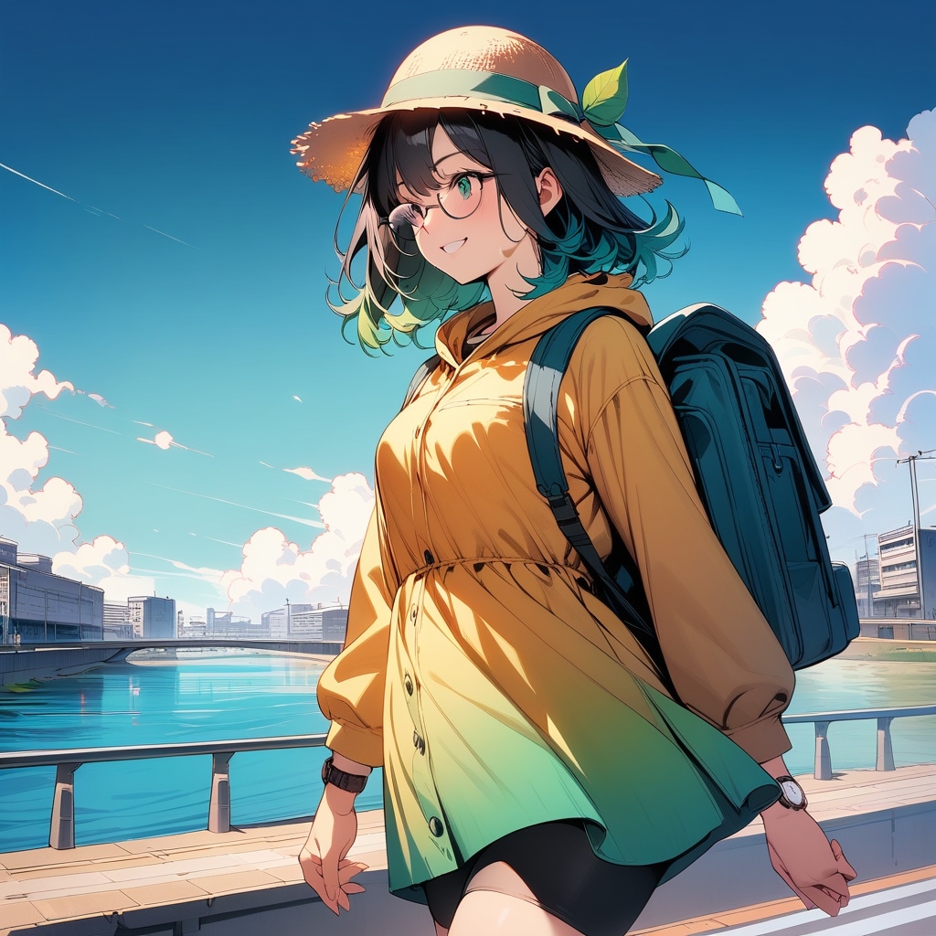 性別と服装は違いますが、眼鏡、麦わら帽子、バッグ、腕時計のセットは割と私のリアル装備に近いです。