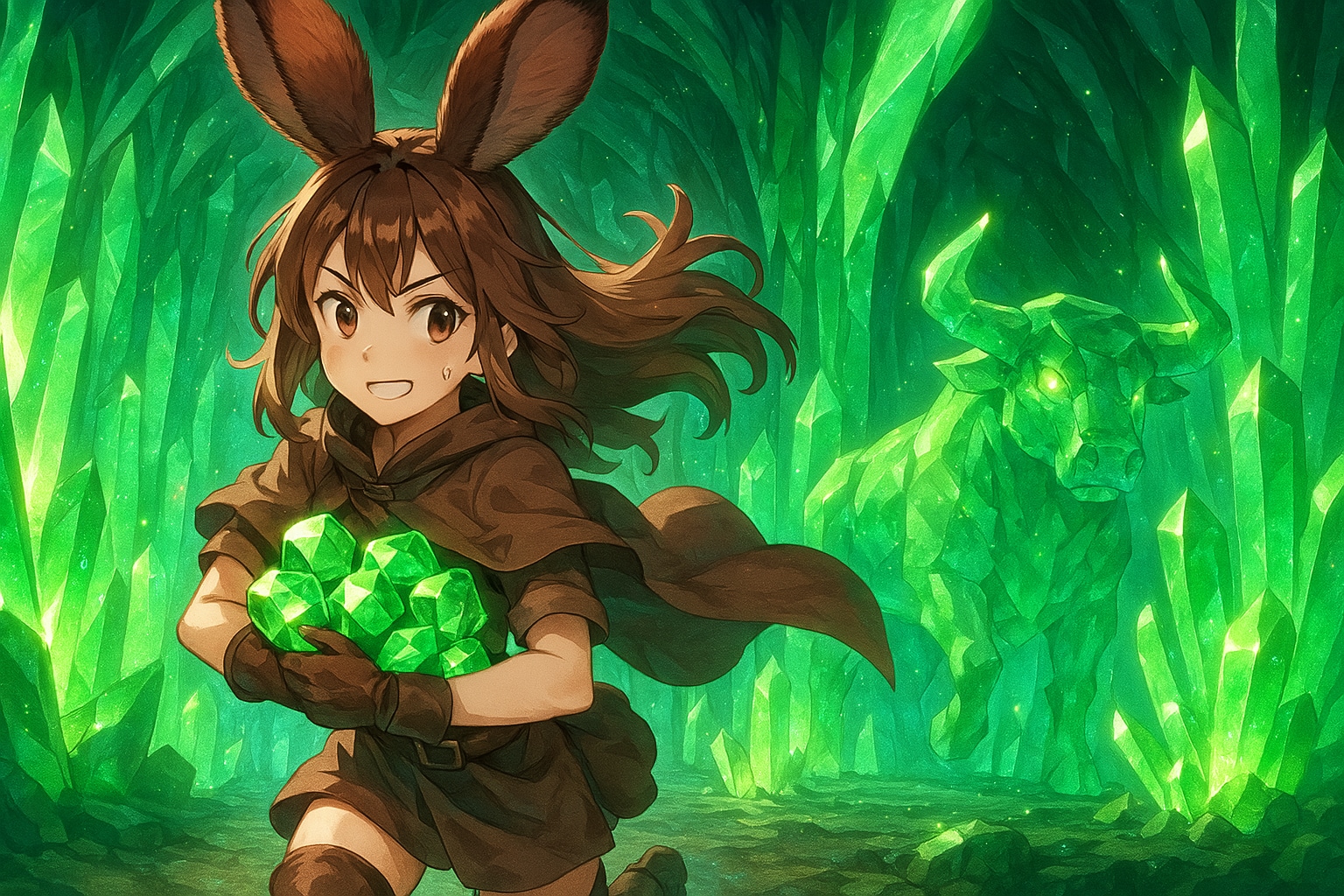 魔法の鉱石の洞窟と兎冒険者ちゃん