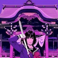 紫の神社で剣を振るう少女の誓